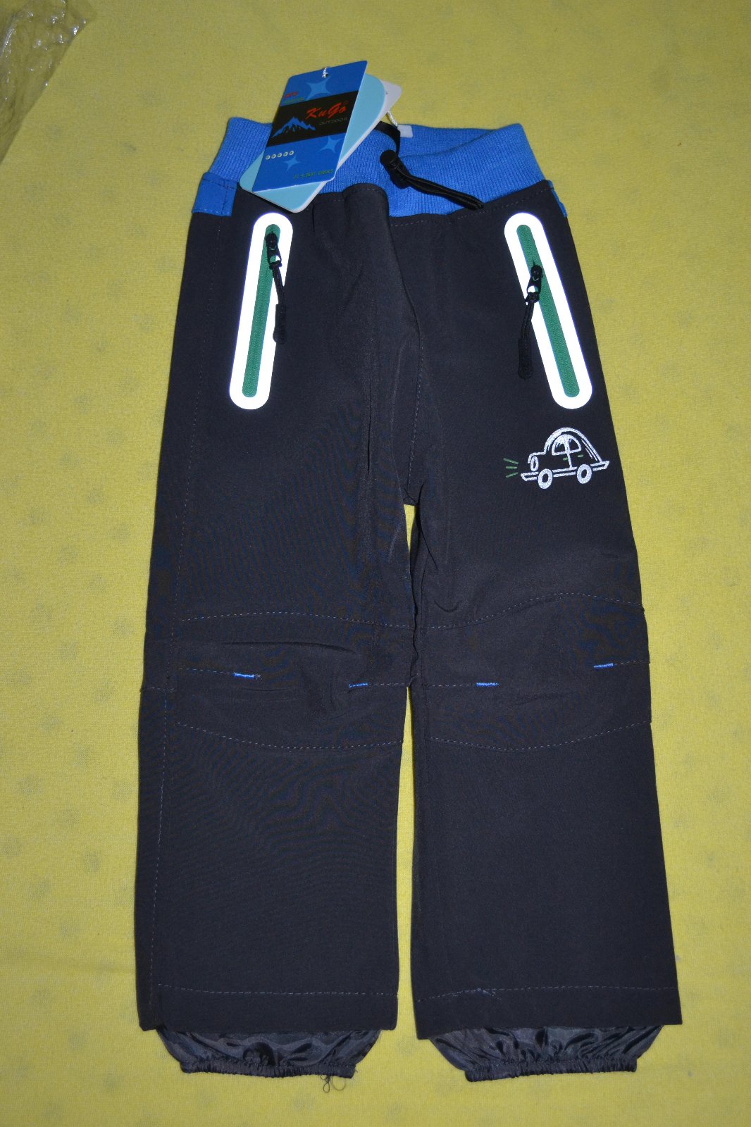 kvalitní jarní nové softshellové kalhoty v.98 Kugo,pas na stažení, kapsy na zipy