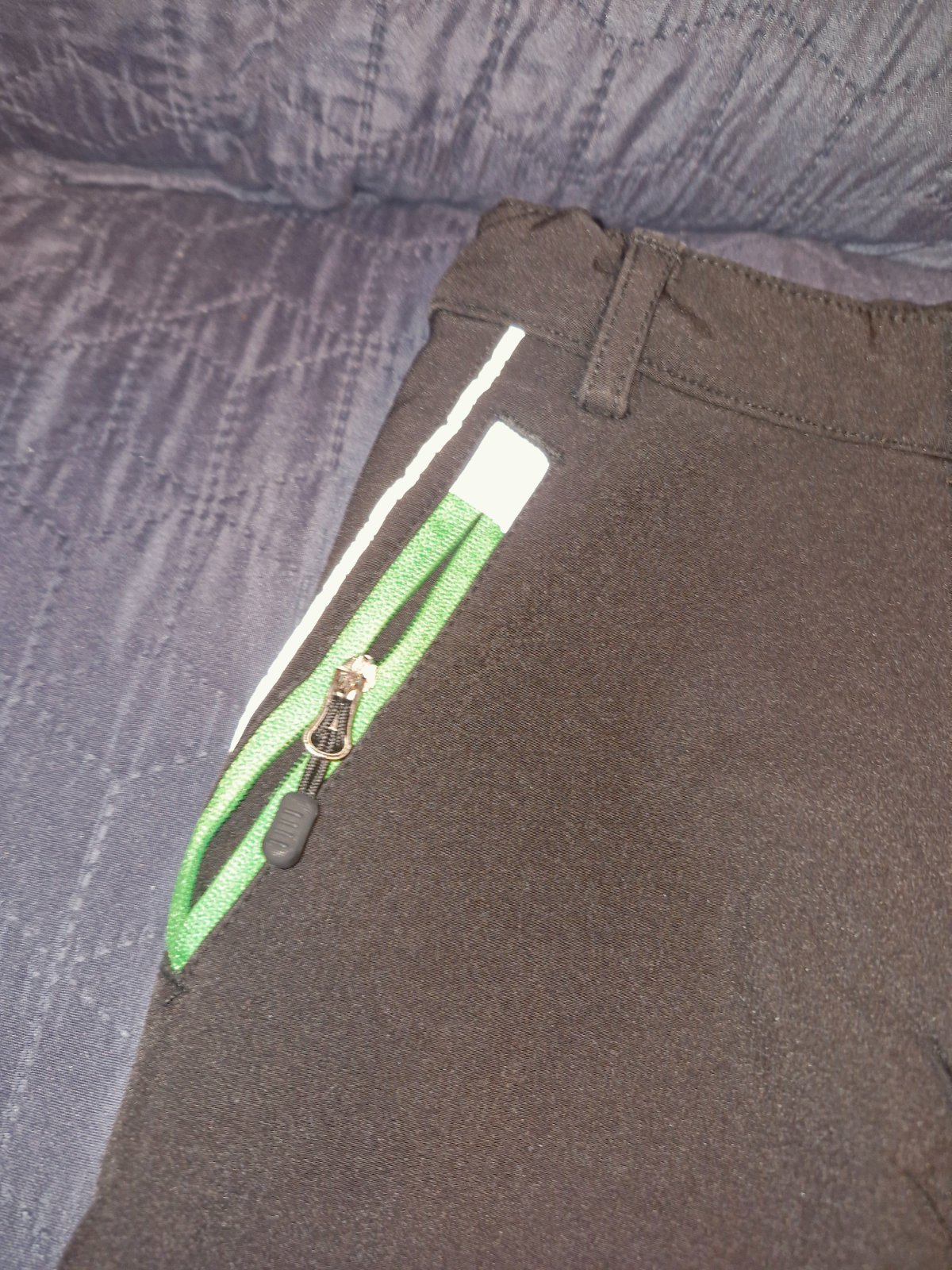 Prodám černé zimní sofshellové zateplené kalhoty značky Kugo ve velikosti 110. Zapínání na zip, regulace pasu, na nohavicích regulace pomocí suchého zipu, reflexní prvky, dvě kapsy (u jedné rozjetý zip). Jinak v super stavu.