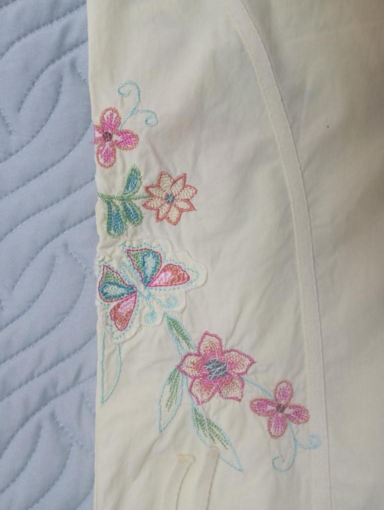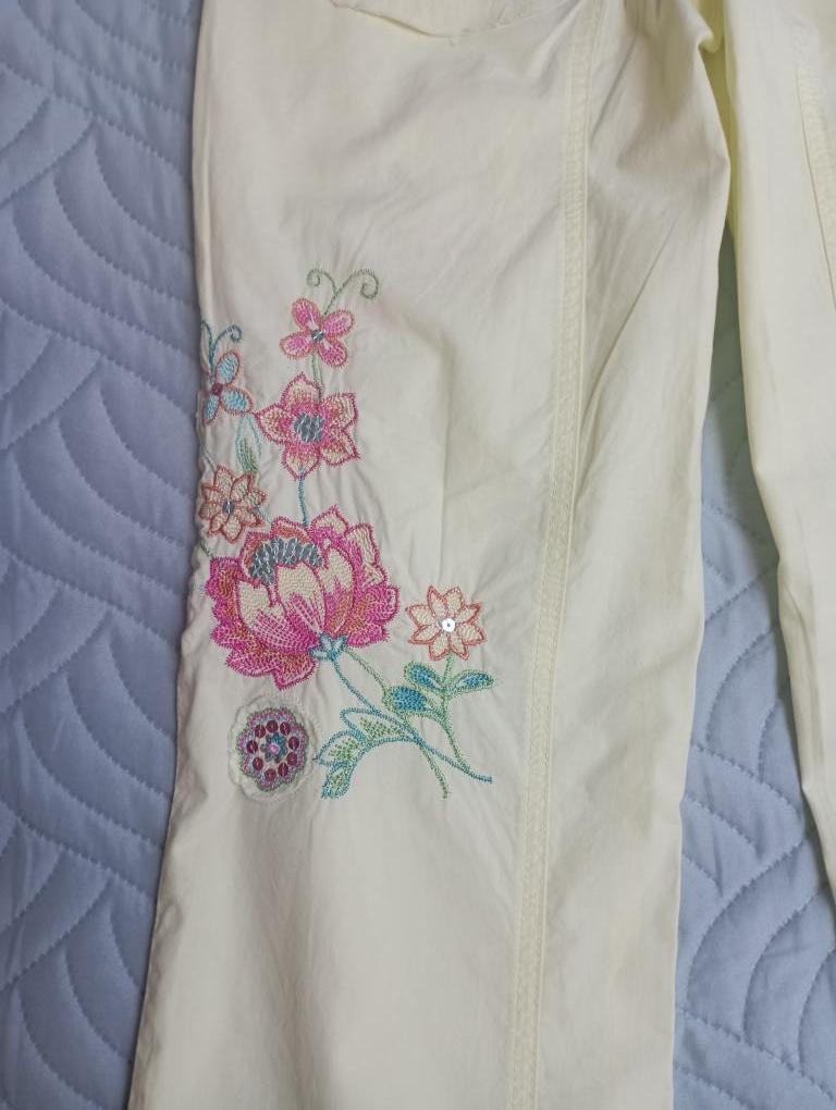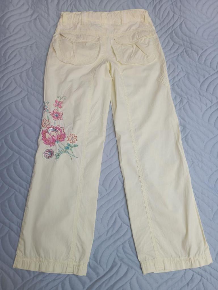 letní/ přechodové plátěné kalhoty, zachovalé, bez poškození, zn. Marks & Spencer , vel. 140, 100% bavlna, kvalitní. Vhodné na různé letní aktivity - i outdorové, vzadu hezká výšivka s flitry, délk...