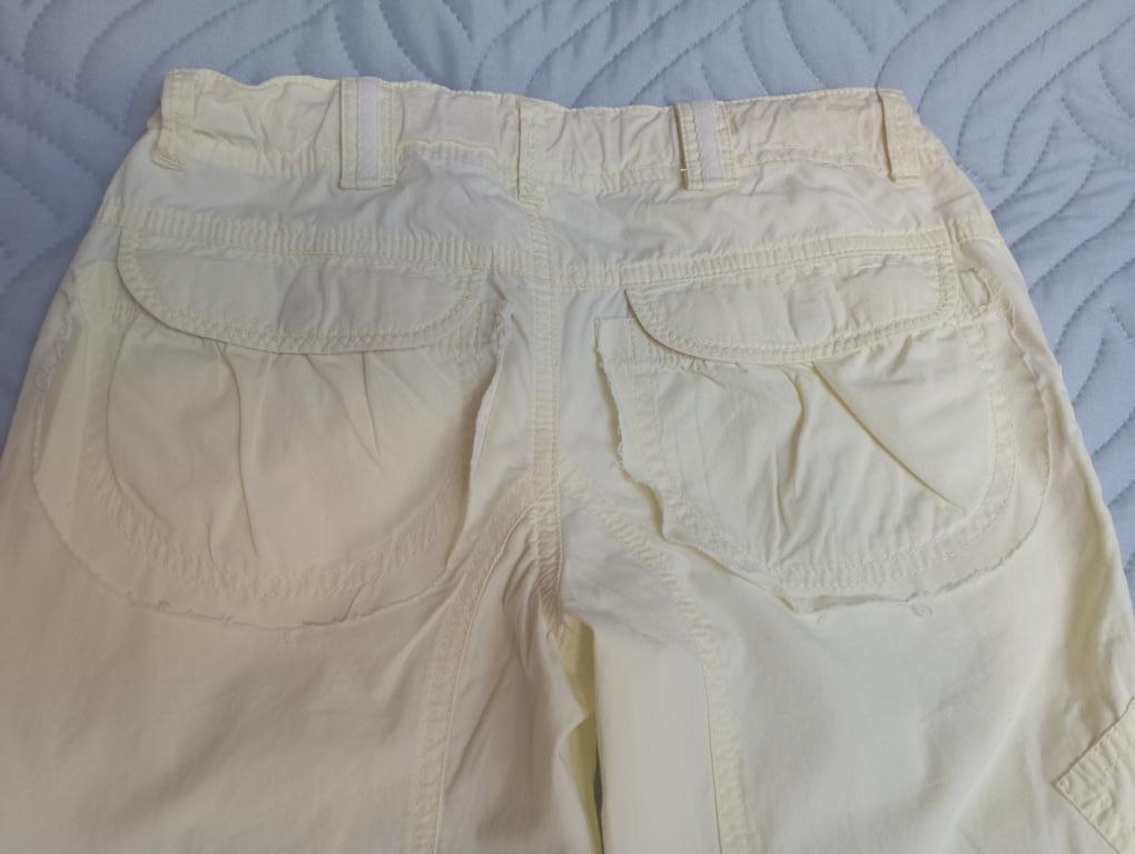 Nošené, mají povolené švy mezi stehny a na zadku. Pružné. Zadní kapsy jsou jen ozdobné. Fotky barevně odpovídají. Míry viz foto.
