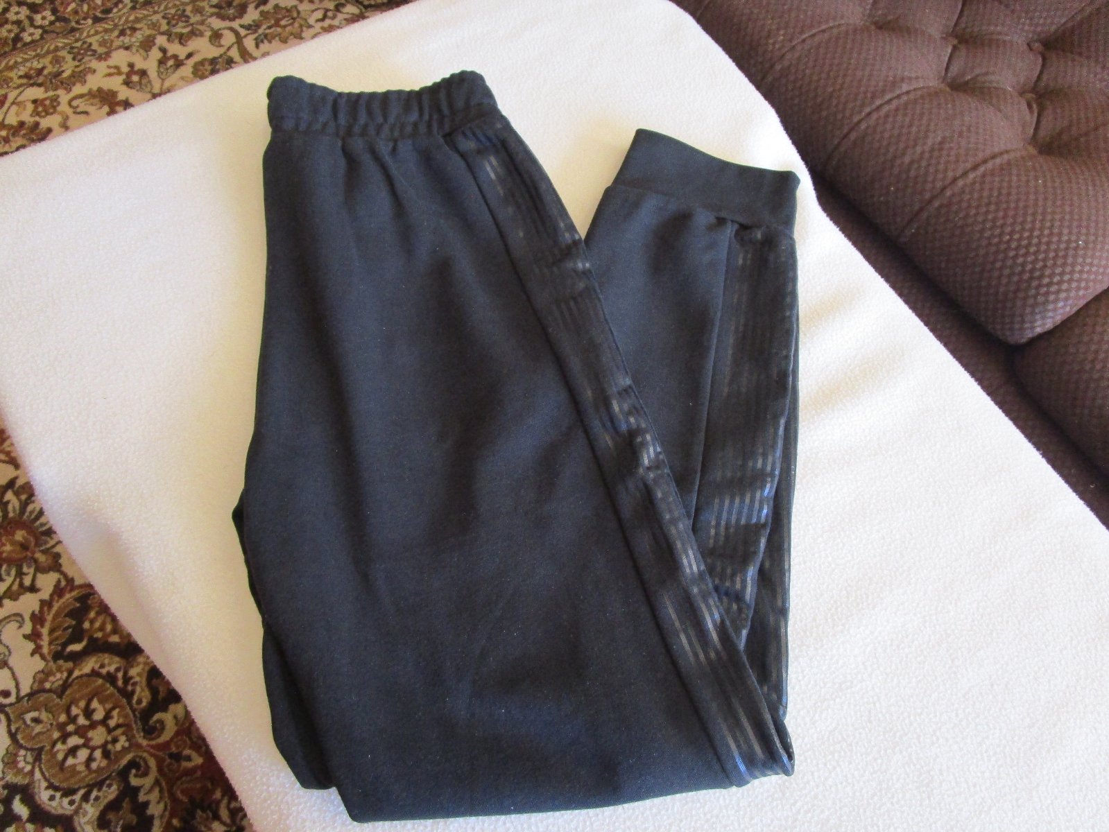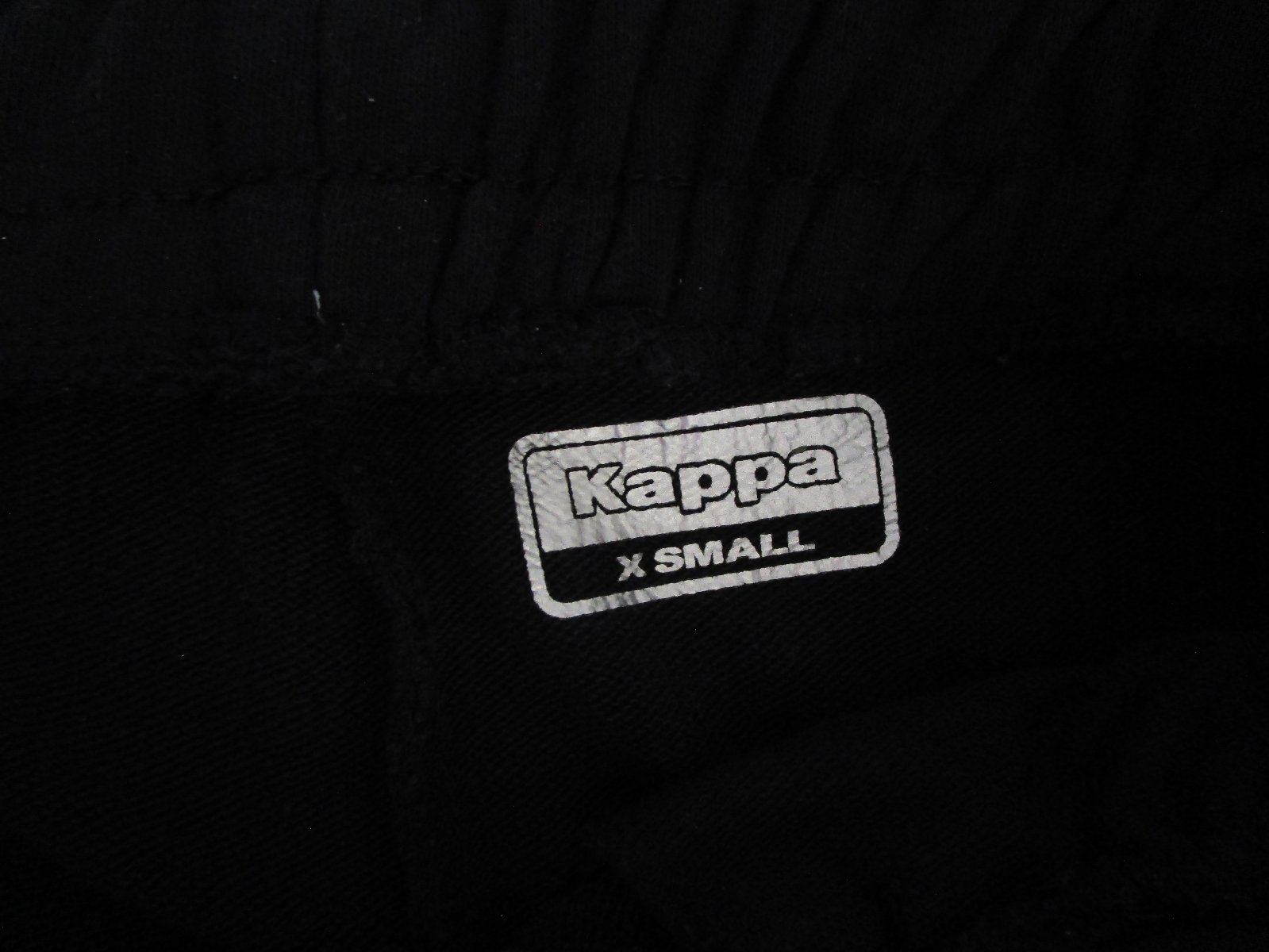 Pěkné černé bavl. tepláky zn. Kappa, vel. XS-S, po straně kapsy, v pase guma (66-70 cm), délka 96 cm, po stranách lesklý proužek, jako nové, cena jen 89 Kč.