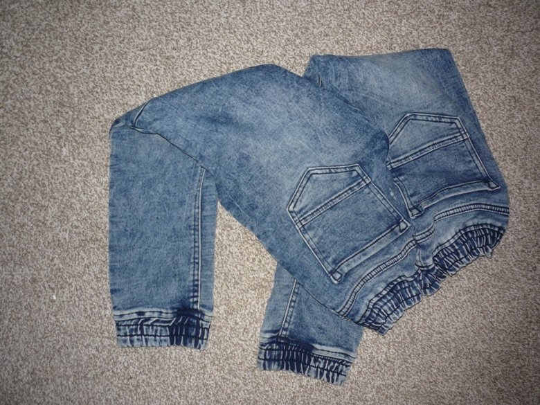 Pohodlné modré džíny vel 146, zn. Pepperts, měkká pružná příjemná džínsovina, 70% bavlna, v pase do gumy, přidaná guma pro hubenější (lze odstranit), délka kalhot 84cm, v pěkném stavu