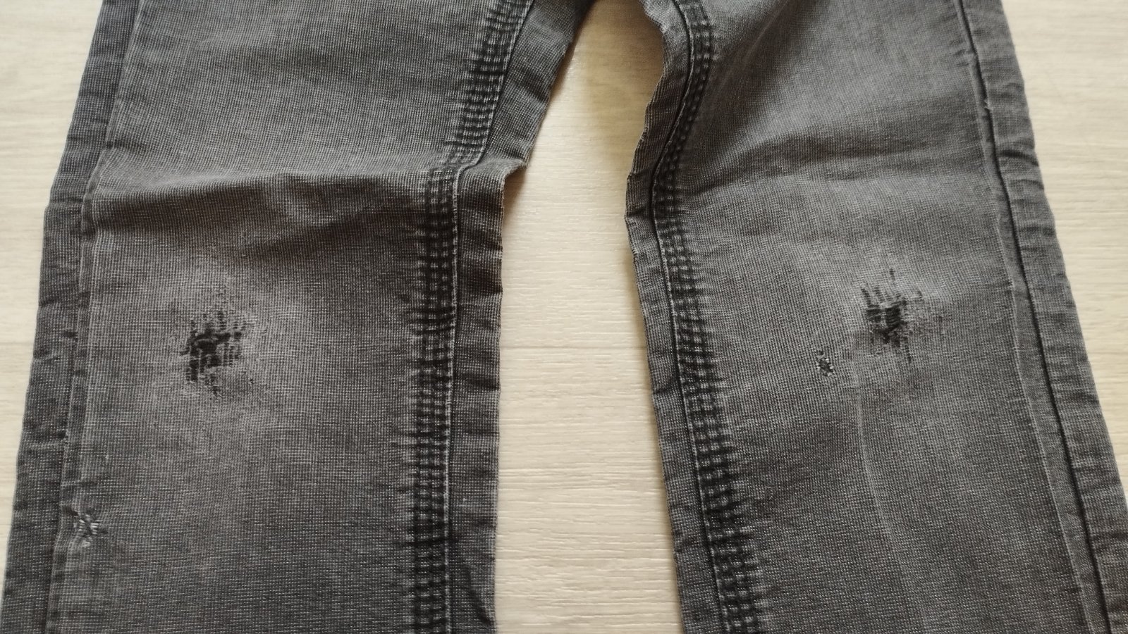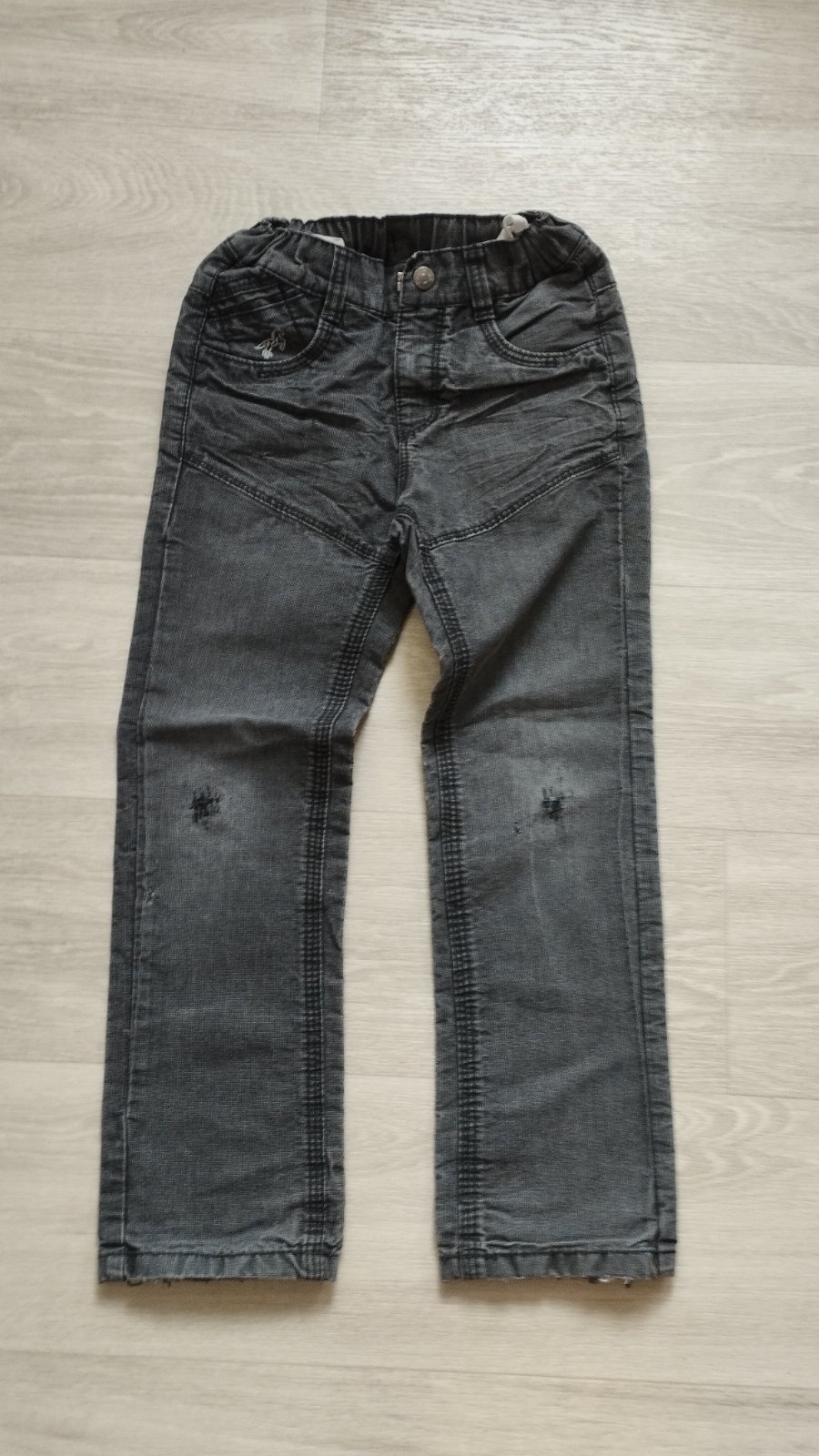 Měkké, příjemné, slušivé. Na koleni flíček (nafoceno). Regulace v pase. Uvedená vel. 128, ale jsou menší.