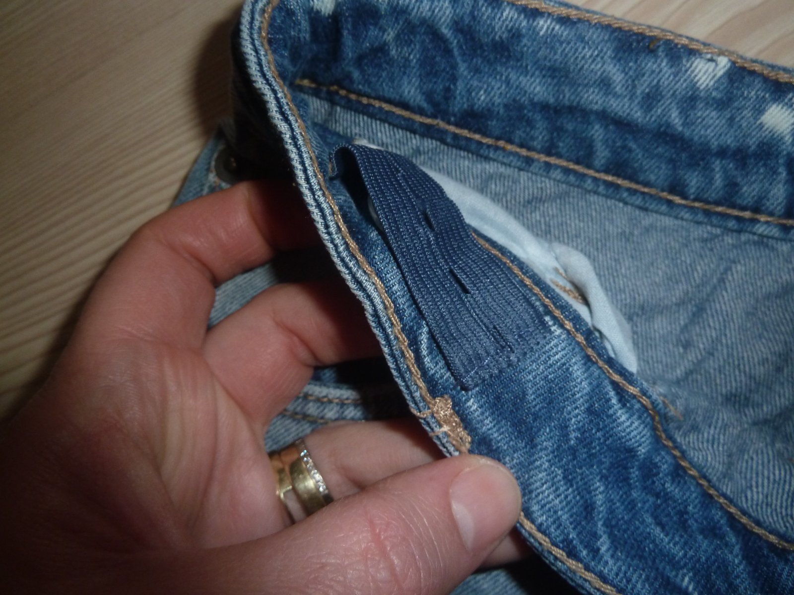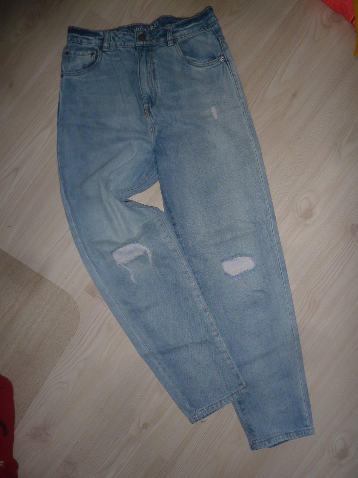 Kupované nové. Nošené, ale bez vad. Nemají ošoupané spodní lemy, fleky atd