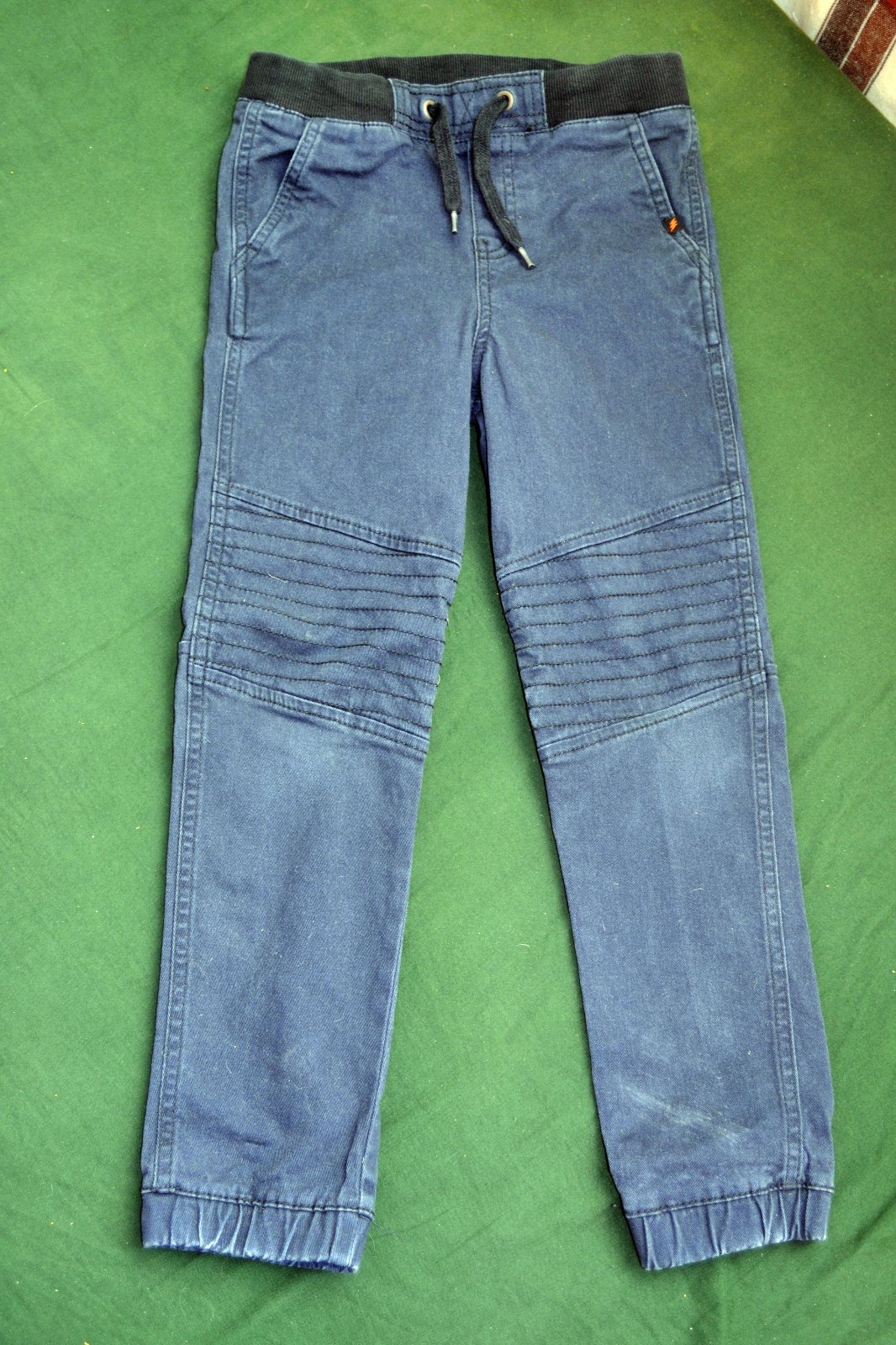 kvalitní praktické chlapecké kalhoty H&M, styl rifle, v.122, pružný pas a navíc na stažení, kapsy, délka 70cm. stav dobrý,barva na fotce bohužel velmi odlišná-jsou tmavě modré