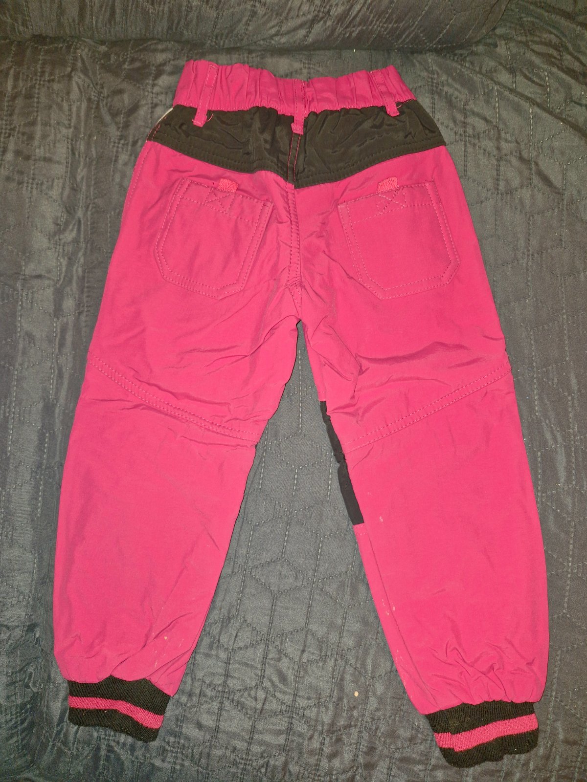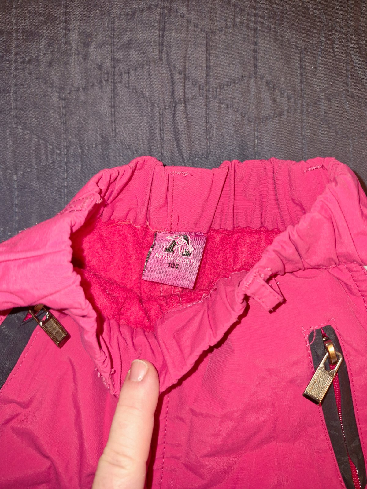 Prodám růžové zateplené kalhoty značky Active Sport ve velikosti 104. V pase na gumu, dvě kapsičky z přední strany, dvě kapsičky ze zadní strany, nohavice do úpletů. Na jednom koleni malinká dírka, ale šikovná maminka si s tím určitě poradí. Jinak ve velmi dobrém stavu