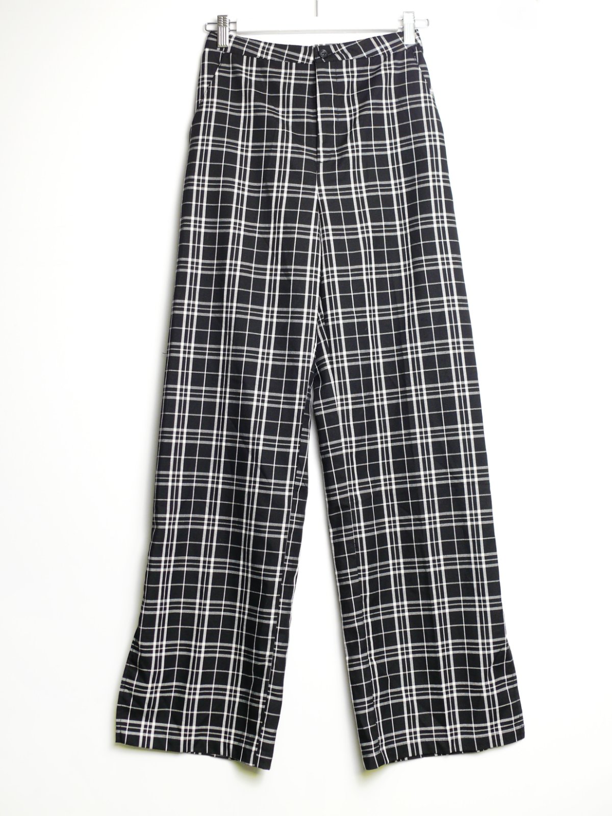 Prodám dívčí společenské kalhoty, černobílá kostka, střih wide leg - možná regulace v pase na gumu a knoflík, velikost výrobce 170, 14 let, TOP stav.