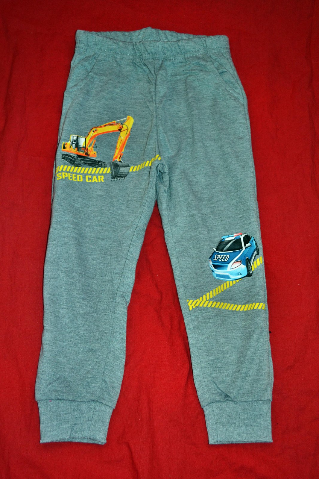 praktické nové tepláky s policií a bagrem, v.122, nové, délka 69cm