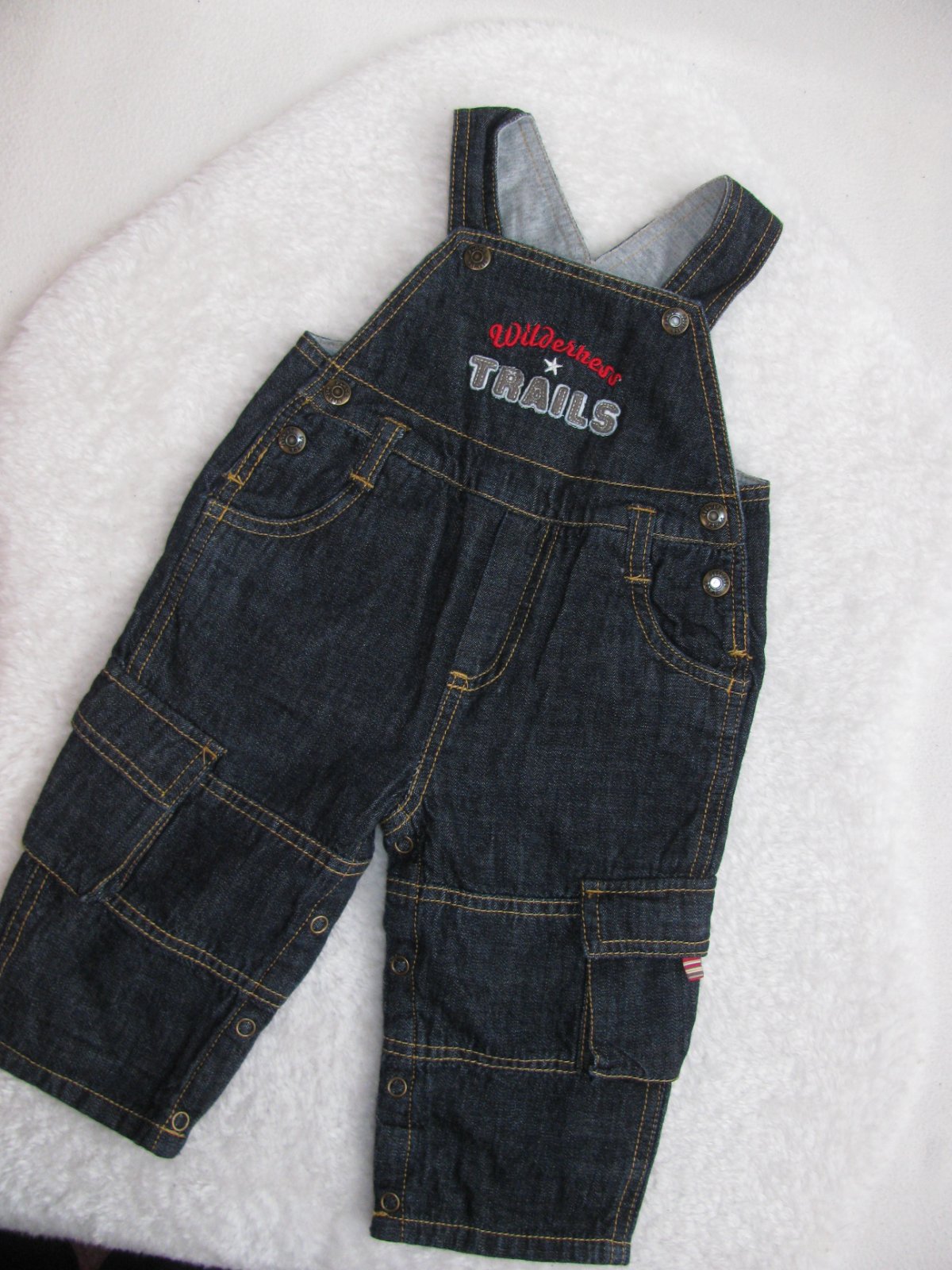Krásné tmavě modré zateplené kalhoty, pohodlné zapínání na druky, šle s regulací, mezi nožkama celo propínací na patentky, vyšitý nápis, kalhoty jsou měkké ,pohodlné, 100% bavlna.