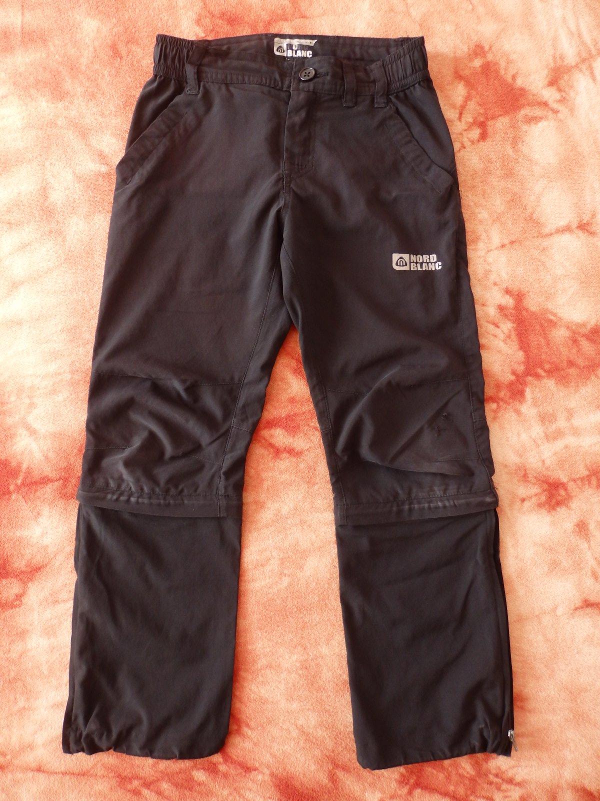 Černé kalhoty NordBlanc s odepínacími nohavicemi, bohužel vyšisovaná kolínka i zadeček - pravé kolínko a zadek jen trošku, ale levé kolínko více a je i zašívané. Jinak jsou hezké.