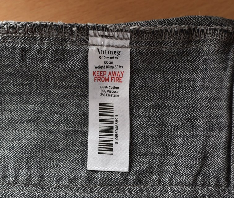 Tm. šedé kalhoty vel. 9 - 12 m. Pružné, v pase guma. Šráky lze odepnout.