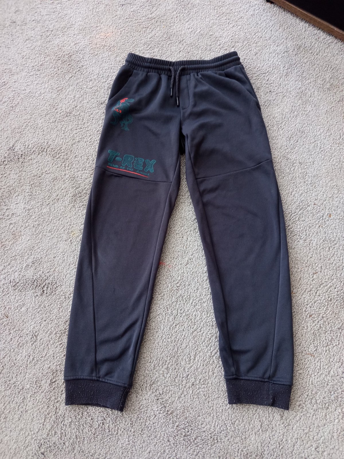 Nošené v pěkném stavu, mají světlejší kolena, ale ne tak moc jak na fotkách. Lehce chloupek od praní jen na některých místech. Ve skutečnosti skoro nejde vidět, vel. 122/128. 60% bavlna, 40% polyes...