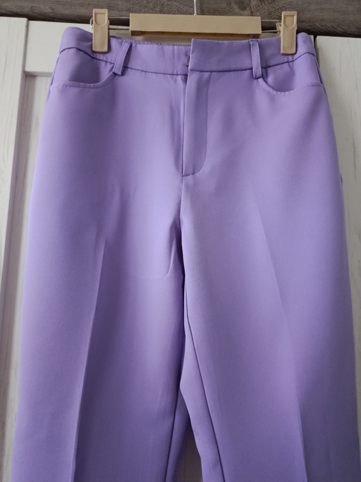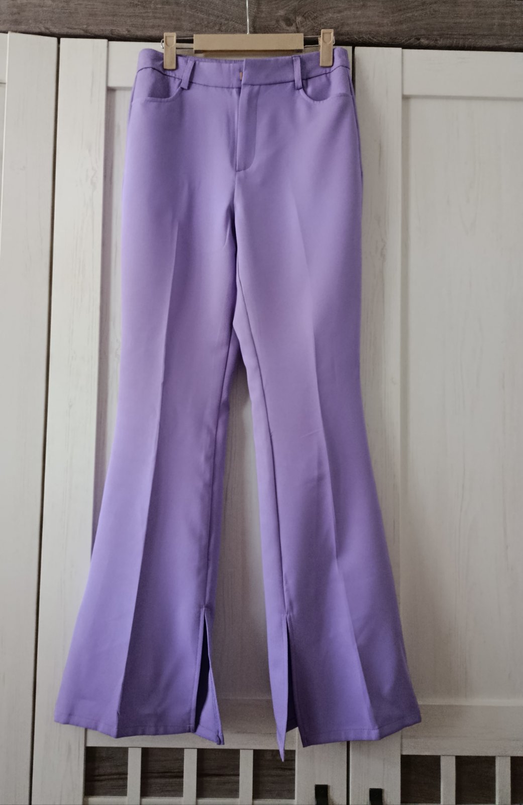 Super dole rozšířené kalhoty v lila barvičce. Jsou nové, ještě s visačkou....Mají poutka na pásek. Míry : délka 108 cm, pas 2 x 36 cm. Materiál: 97 % polyester a 3 % elastanu....Poštovné - balíkovna za 85 Kč nebo zásilkovnou za 90 Kč.