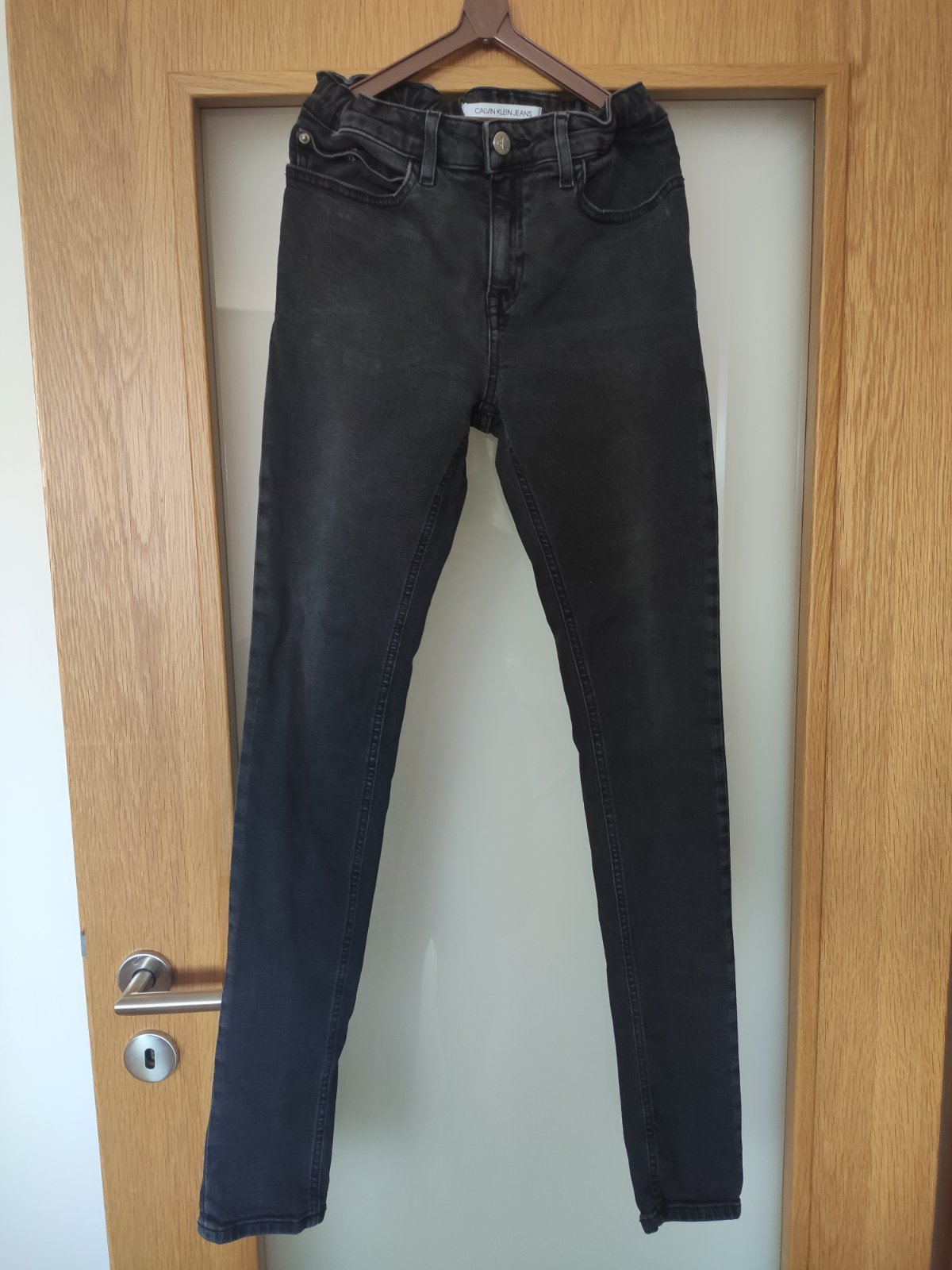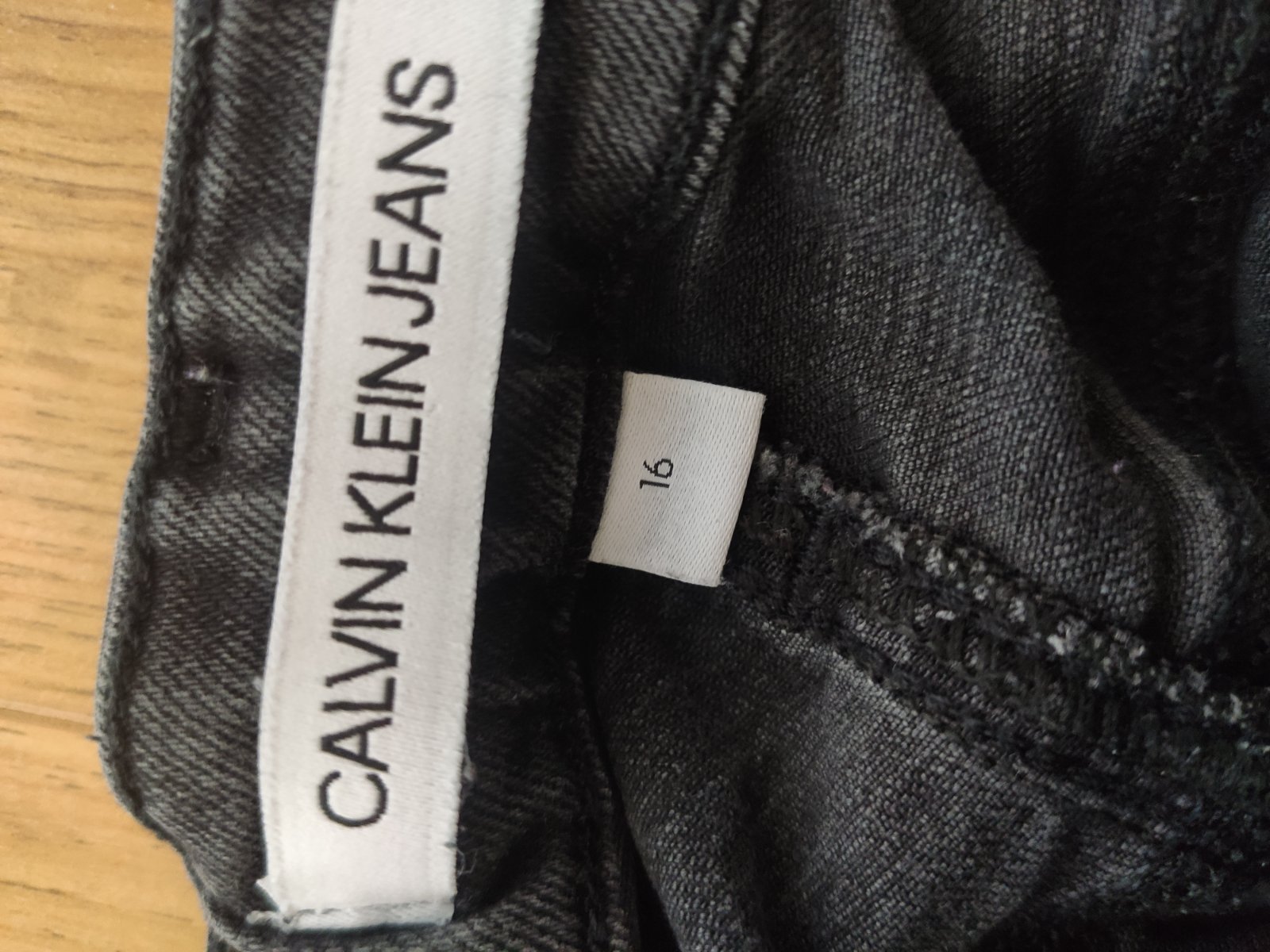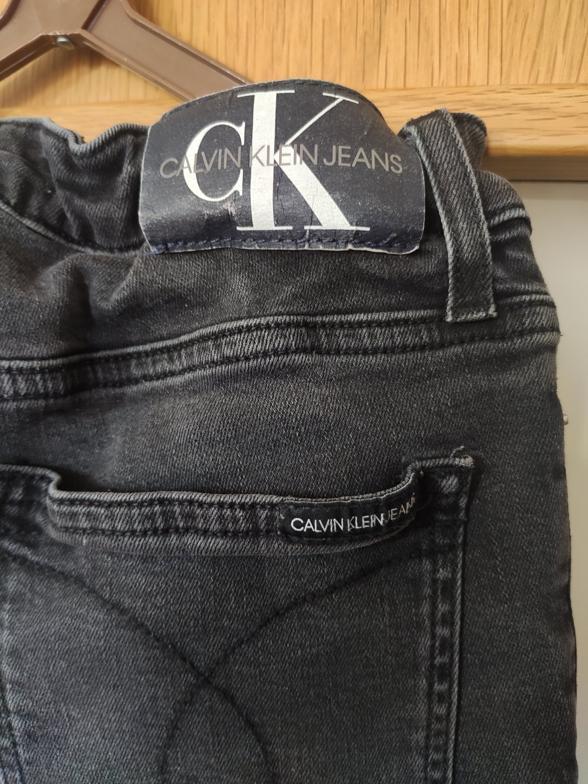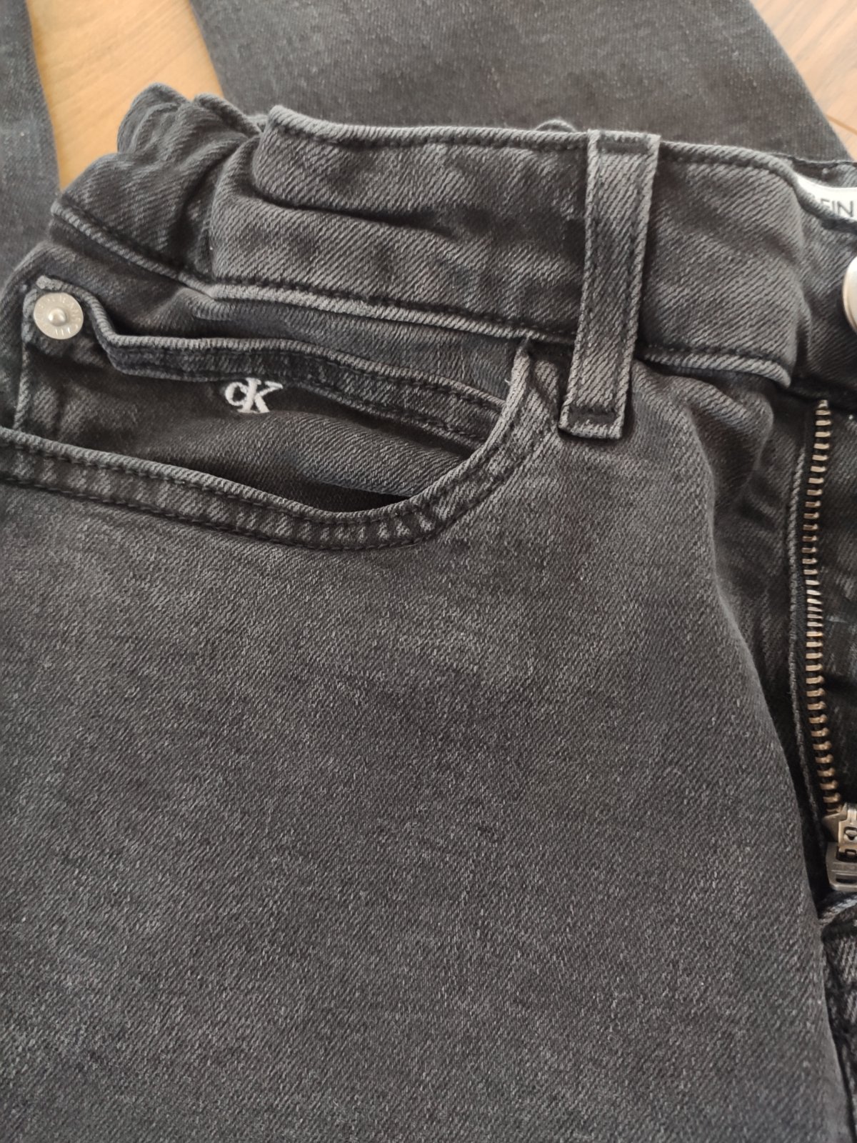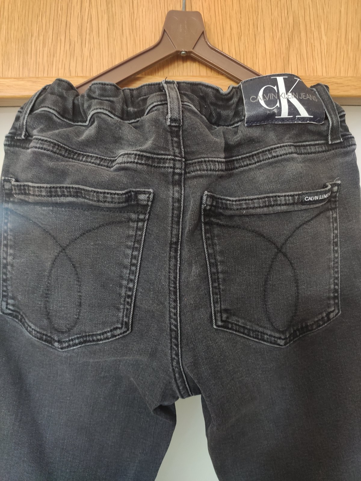 Džíny, zn.Calvin Klein, vel.16, syn nosil v 5. a 6.třídě, ale je dlouhý a štíhlý. Džíny jsou velmi SLIM! Barva působí lehce sepraně není to úplně černá. Jsou slušivé! V pase regulace na gumu a knoflík. Max. šířka pasu 2x31 cm, přes boky 2x37cm, koleno 2x15cm, kotníky 2x12cm. Délka 101 cm, od rozkroku 74 cm. Balíkovna 69,-Kč, zasilkovna 79,-
