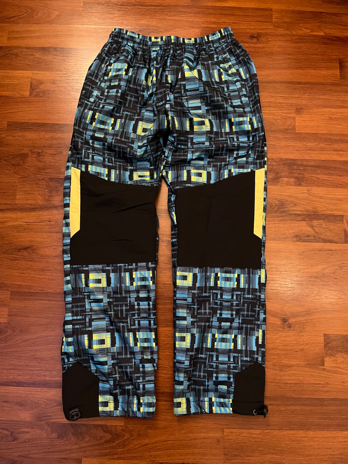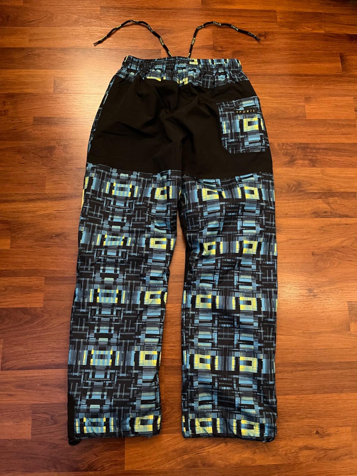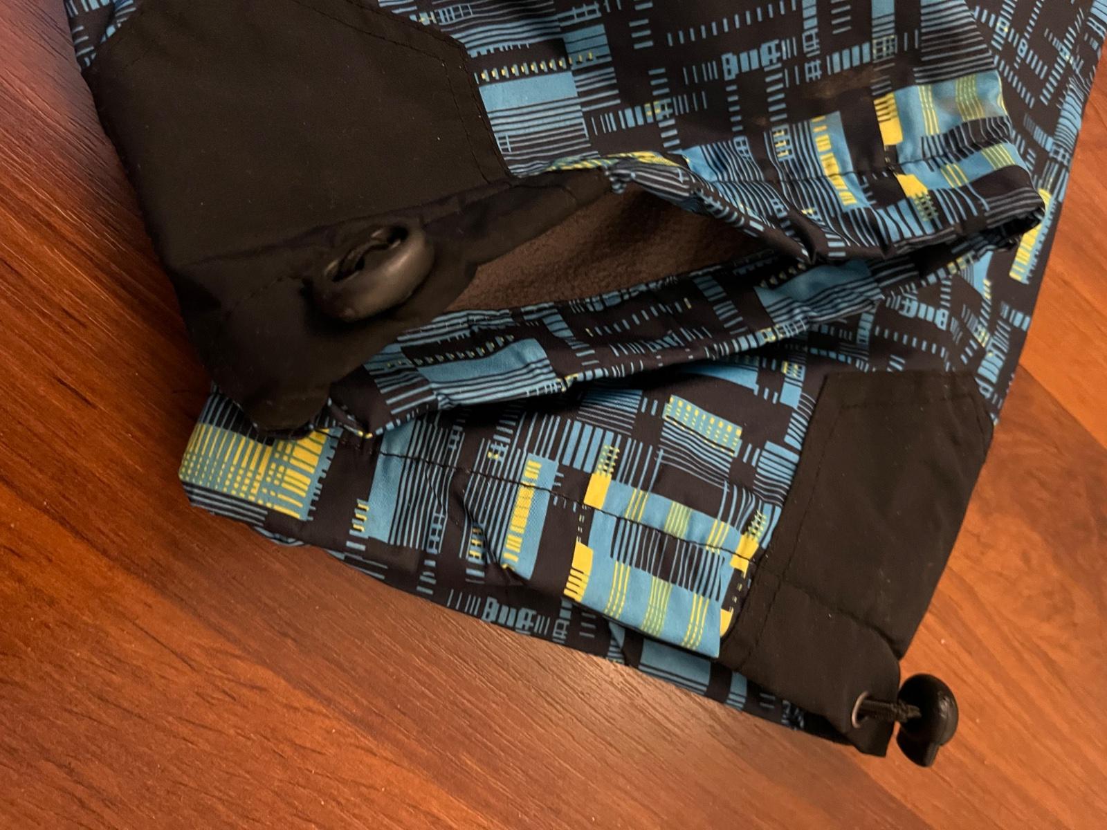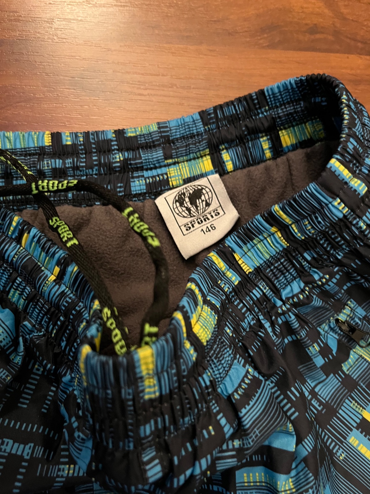 Uvnitř jemný fleece, 2 přední kapsy na zip, jedna vzadu na suchý zip. V pase šňůrka, na nohavicích olivky.