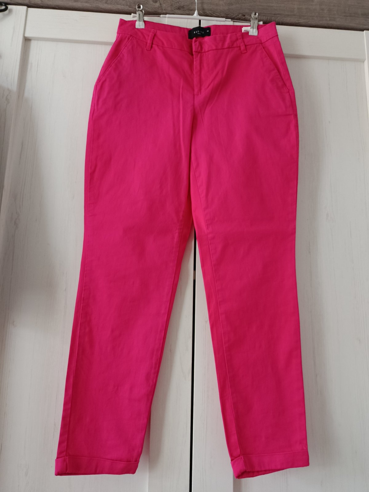 Super chino kalhoty. Ve předu funkční kapsy, poutka na pásek, ale ten nebyl součástí prodeje ...Vzadu nad kapsou je našité logo Mohito....Kalhoty jsou v perfektním stavu. Míry : délka 97 cm, pas 2 x 38 cm. Materiál : 98 % bavlna a 2 % elastanu. Poštovné - balíkovna za 85 Kč nebo zásilkovnou za 90 Kč.