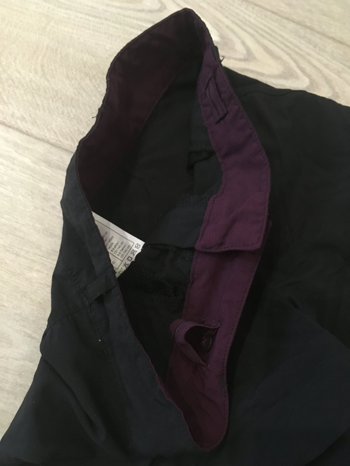 Jsou funkční, prodyšné, lehké a lze je přeměnit na kraťasy. Regulace v pase. Lemy nohavic lze stáhnout. Barva černá.