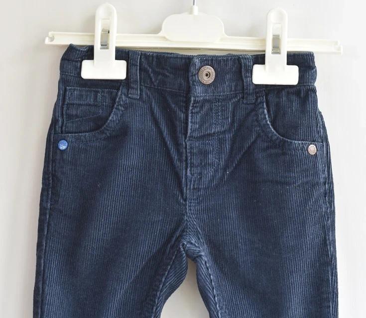 Tm. modré manšestrákové kalhoty. V pase regulace. Kalhoty nejsou pružné.