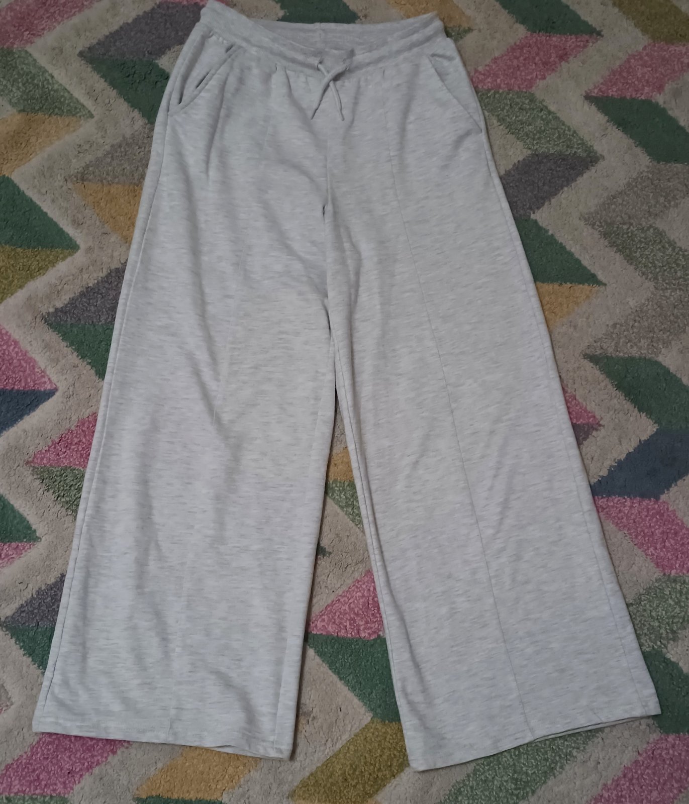 Moderní široké tepláky,velikost uvedena 158/164,ale jsou menší,odpovídají tak velikosti spíše 152,velikosti 164 určitě neodpovídají,mají dvě kapsičky a v pase lze stahovat