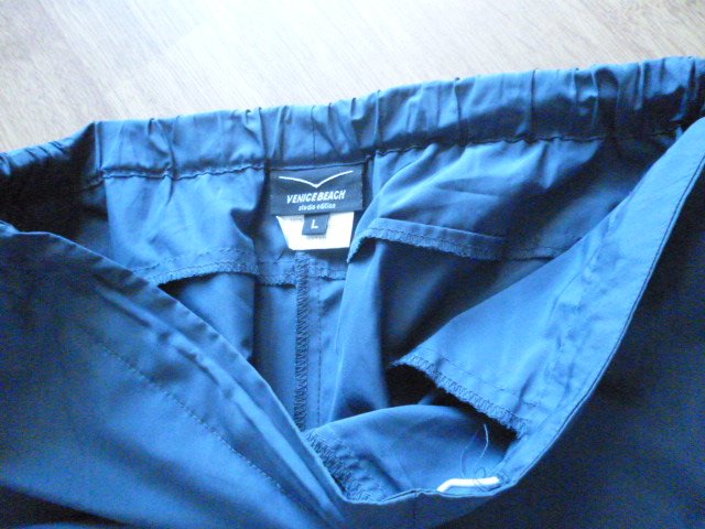 jsou nádherné, lehké, kapsy na zip, krásná barva, málo nošené, dole stahování, délka je 1,03, pas od 2x39-47 cm, stehno u rozkroku je 2x33 cm, tmavší modré jak na foto, psaná vel. L zn. Venice Beach