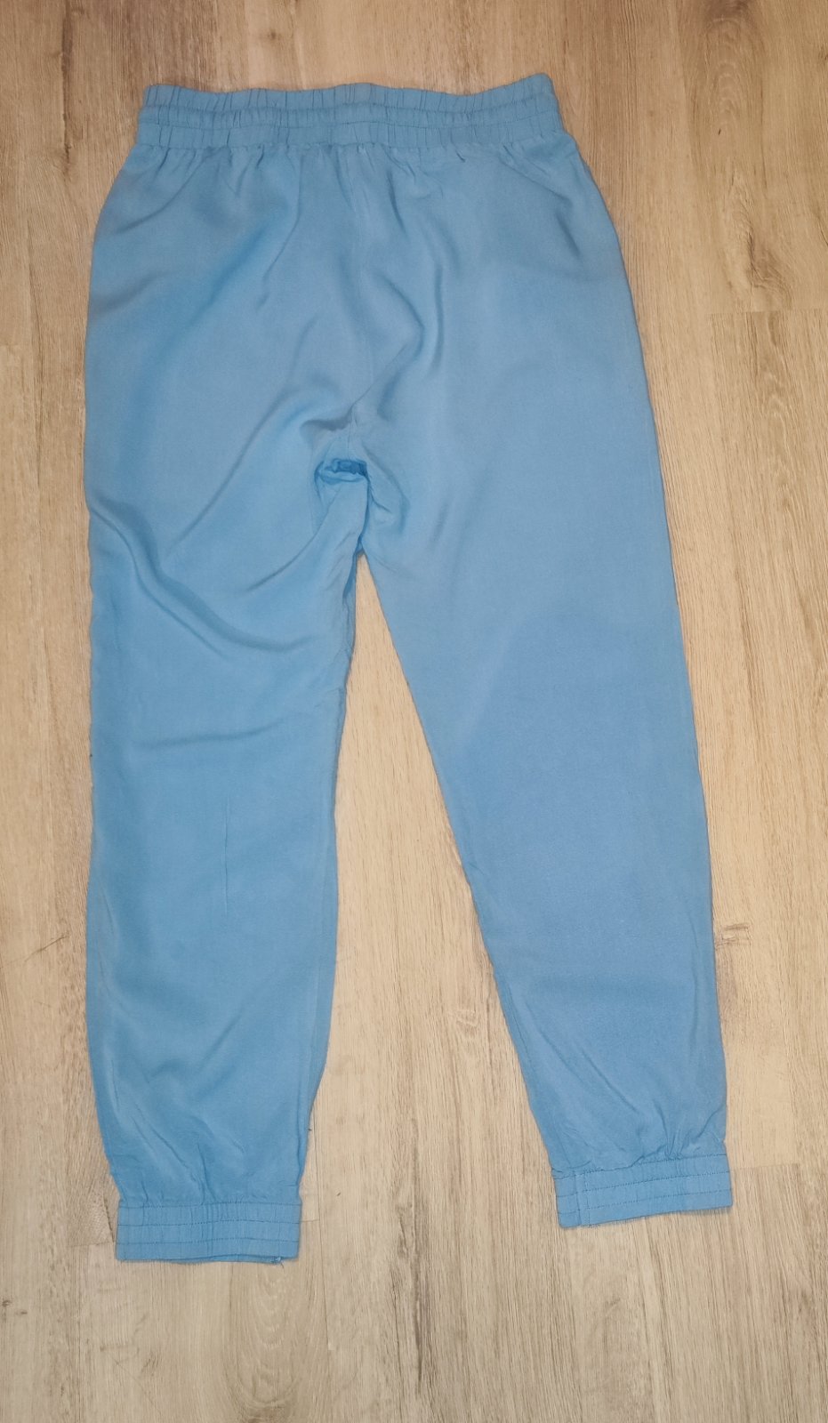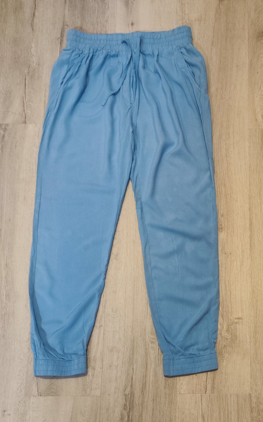 Prodám pohodlné, lehké kalhoty značky Terranova v krásné světle modré barvě, velikost M – rozměry: délka vnější strany nohavice 94 cm; délka vnitřní strany nohavice 63 cm; šířka 34 cm (pružný pas, měřeno nenatažené). Ideální na jaro, léto, podzim nebo jako stylové domácí oblečení. Střih typu jogger – v pase na gumu se šňůrkou na stažení, nohavice zakončené pružným lemem. Materiál 100% viskóza. Kalhoty mají kapsy na bocích. Cena 100 Kč, v Brně možné osobní předání.