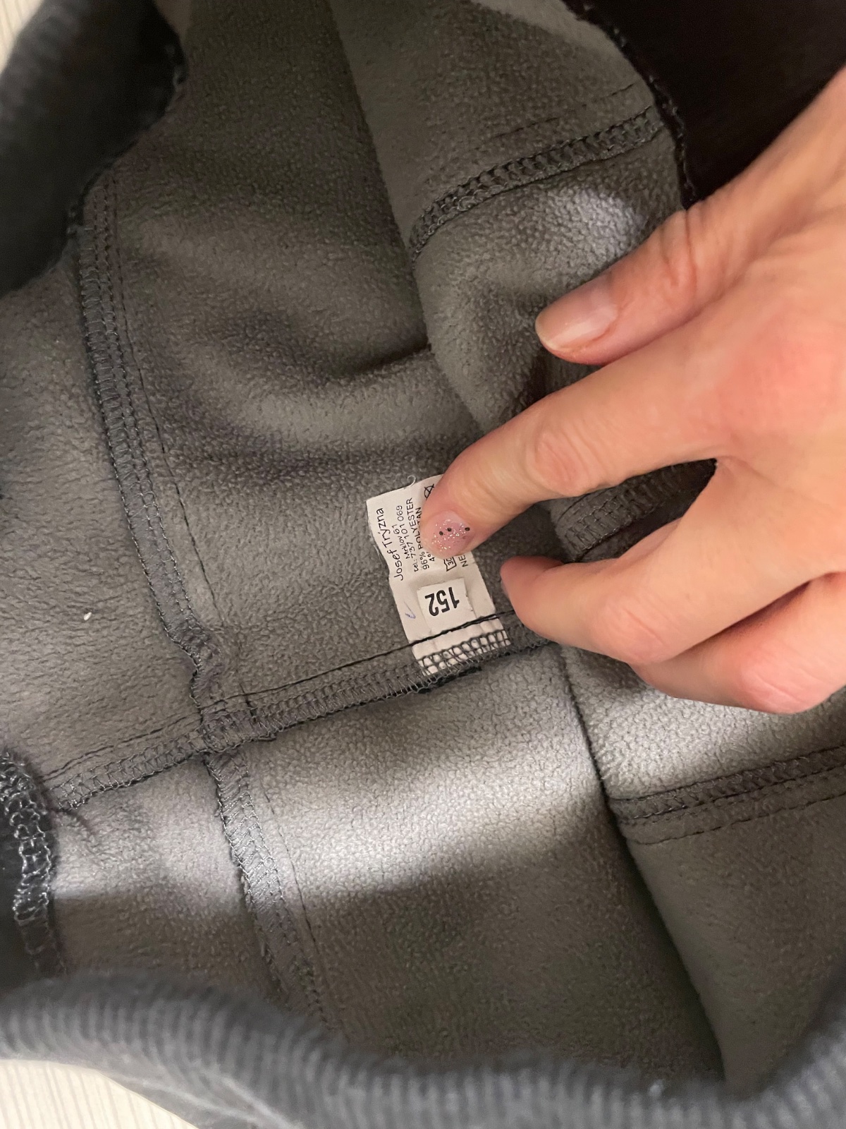 Nošené málo, pěkné, černé, natahovací bez zipu, v pase pružná guma, vel. 152, délka 86,5cm, pas v klidu 2x33cm. bavlna+polyester+elastan. Lehčí měkké. zn. Here+There