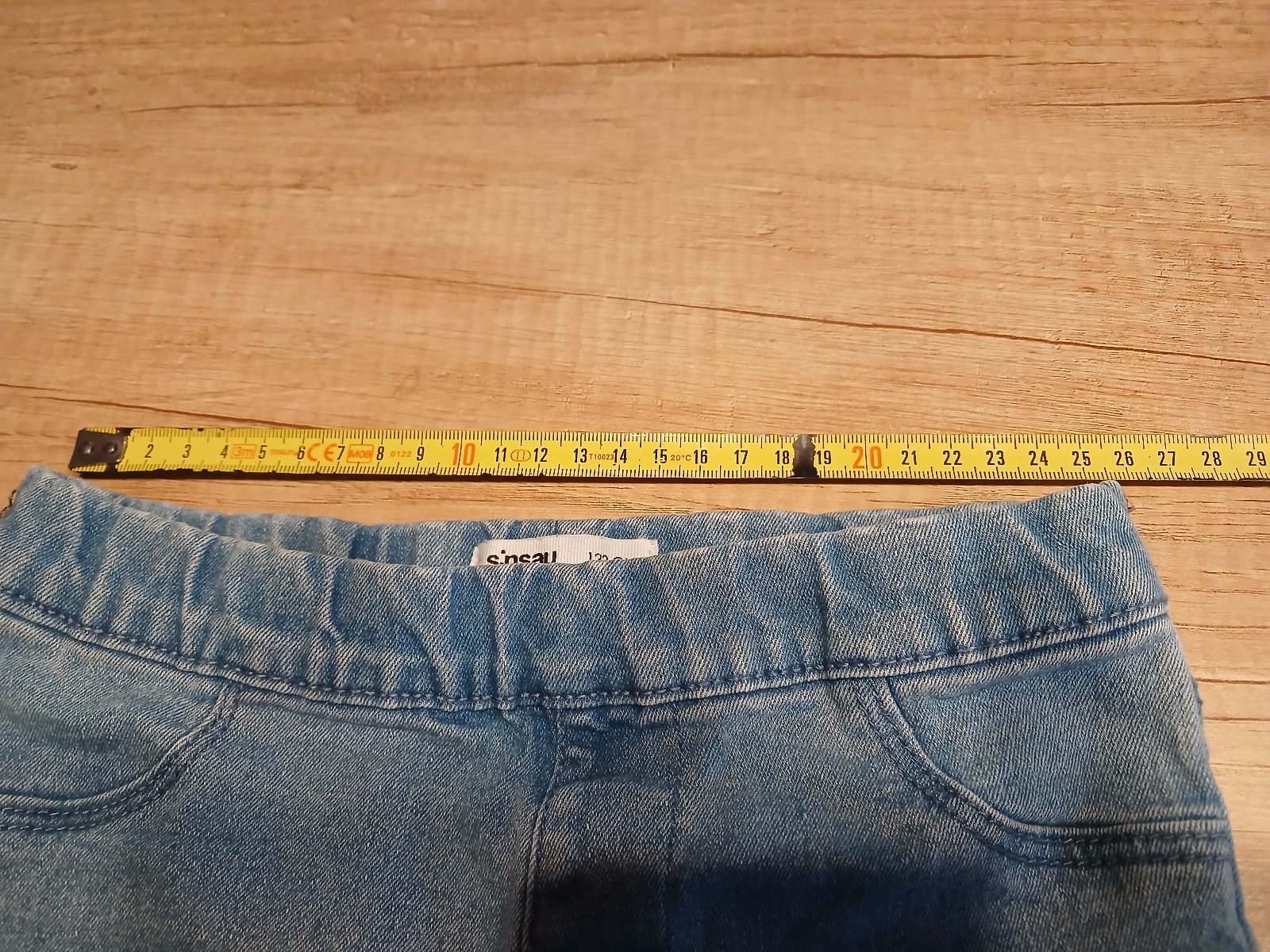 Nabízím nošené džíny vel. uvedena 122 - dle mého spíše menší. Prosím měřte. Délka 70 cm, délka vnitřní nohavice 51 cm, pas 2 x 27 -31 cm - lze regulovat gumou v pase. Lehce elastické. Slušivé.