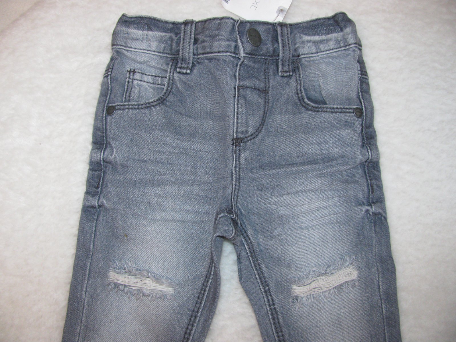 Šedé bavlněné džíny, v pase pružné s regulací, zap. na druk, kapsy, 100% bavlna.