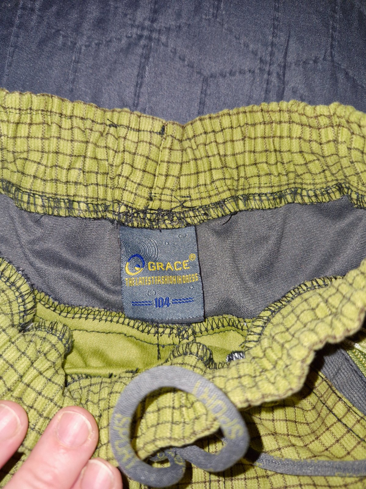 Prodám letní zelené kalhoty značky Grace ve velikosti 104. V pase na gumu a šňůrka, dvě kapsy z přední strany, dvě kapsy ze zadní strany. V super stavu.
