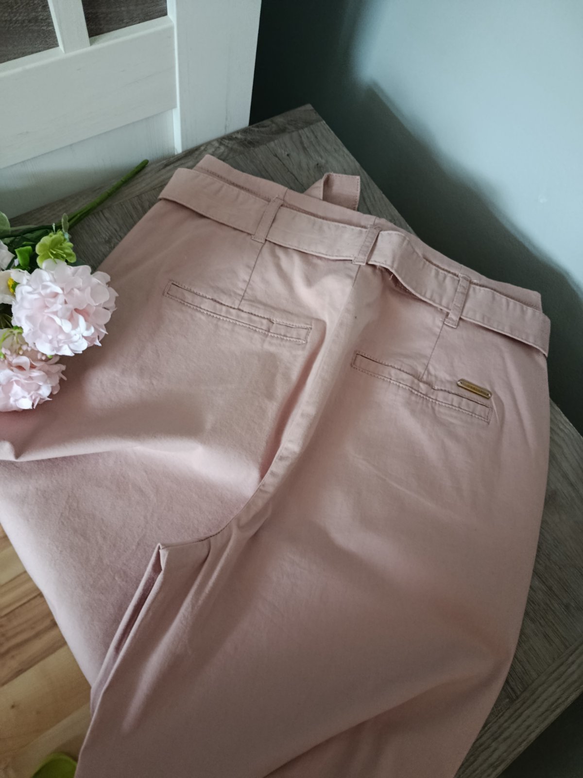 Super chino bavlněné kalhoty s páskem....Ve předu funkční kapsy, vzadu také kapsy. Ve předu zapínání na zip, svorku a knoflík ... Vzadu na kapse logo Mohito. Kalhoty mají starorůžovou barvičku. Jednou na sobě, jsou v perfektním stavu. Míry : délka 101 cm, pas 2 x 36 cm. Materiál : 98 % bavlna a 2 % elastanu. Poštovné - balíkovna za 85 Kč nebo zásilkovnou za 90 Kč.