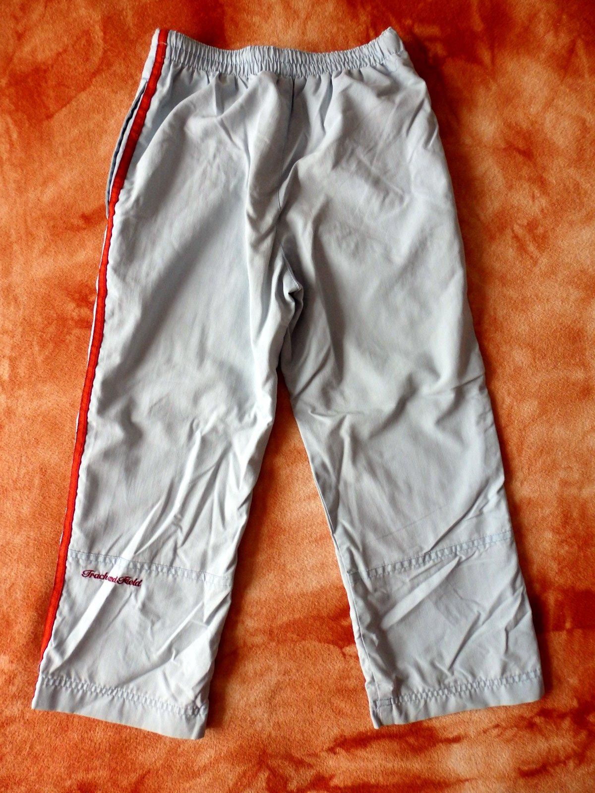 Světle modré sportovní kalhoty se síťovanou podšívkou, ve spodní části nohavic šusťáková podšívka, dvě kapsy, v pase šňůrka ke stažení. Velikost neuvedena, prosím měřte. Jsou v dobrém stavu.