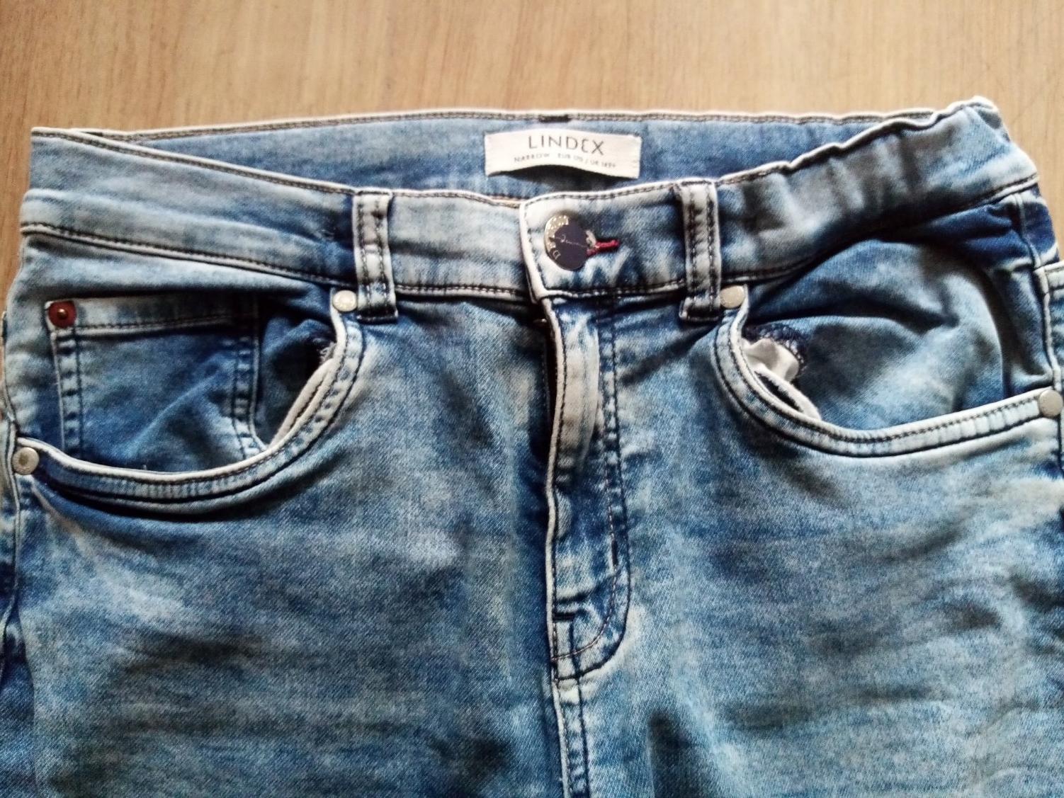 Super měkké a pohodlné džíny s gumou v pase,stahovací snurka,a regulace v pase. Akorat na jedné nohavici pod kolenem světlý flek (viz foto). Jinak TOP stav. U syna hodně oblíbené, měli jsme ve 3 ru...