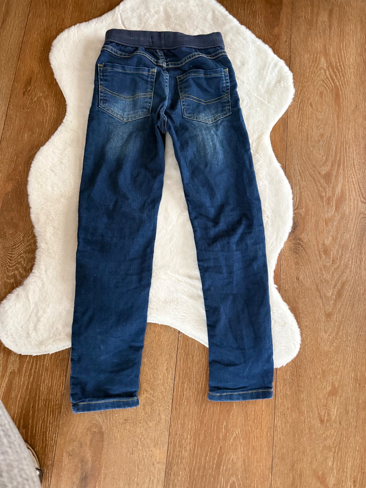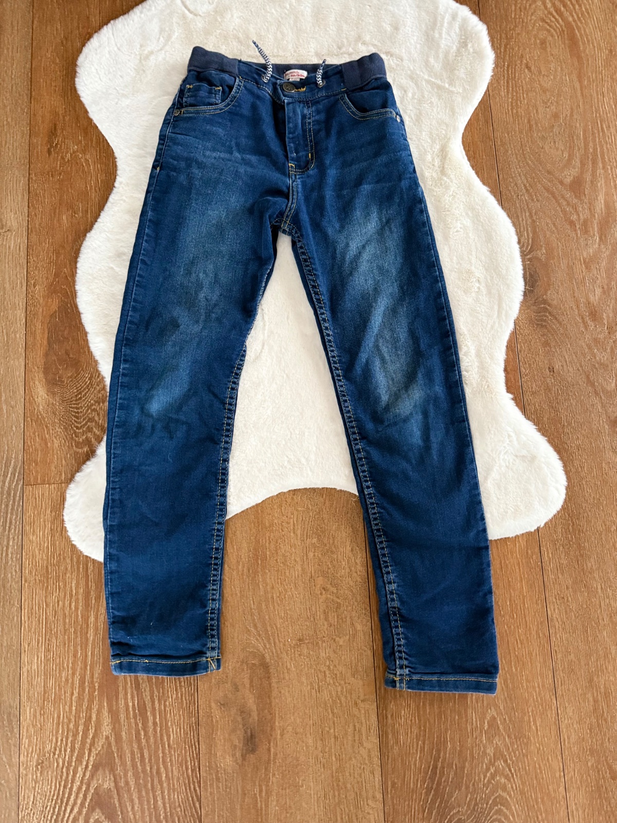 Prodám málo nošené džíny po synovi, zn.H&M, uvedená vel.128, ale délkou odpovídají jejich vel.122, délka 72 cm, slim fit, strečové. Malinko škrtnuté koleno (viz.poslední foto), jinak ve výborném st...