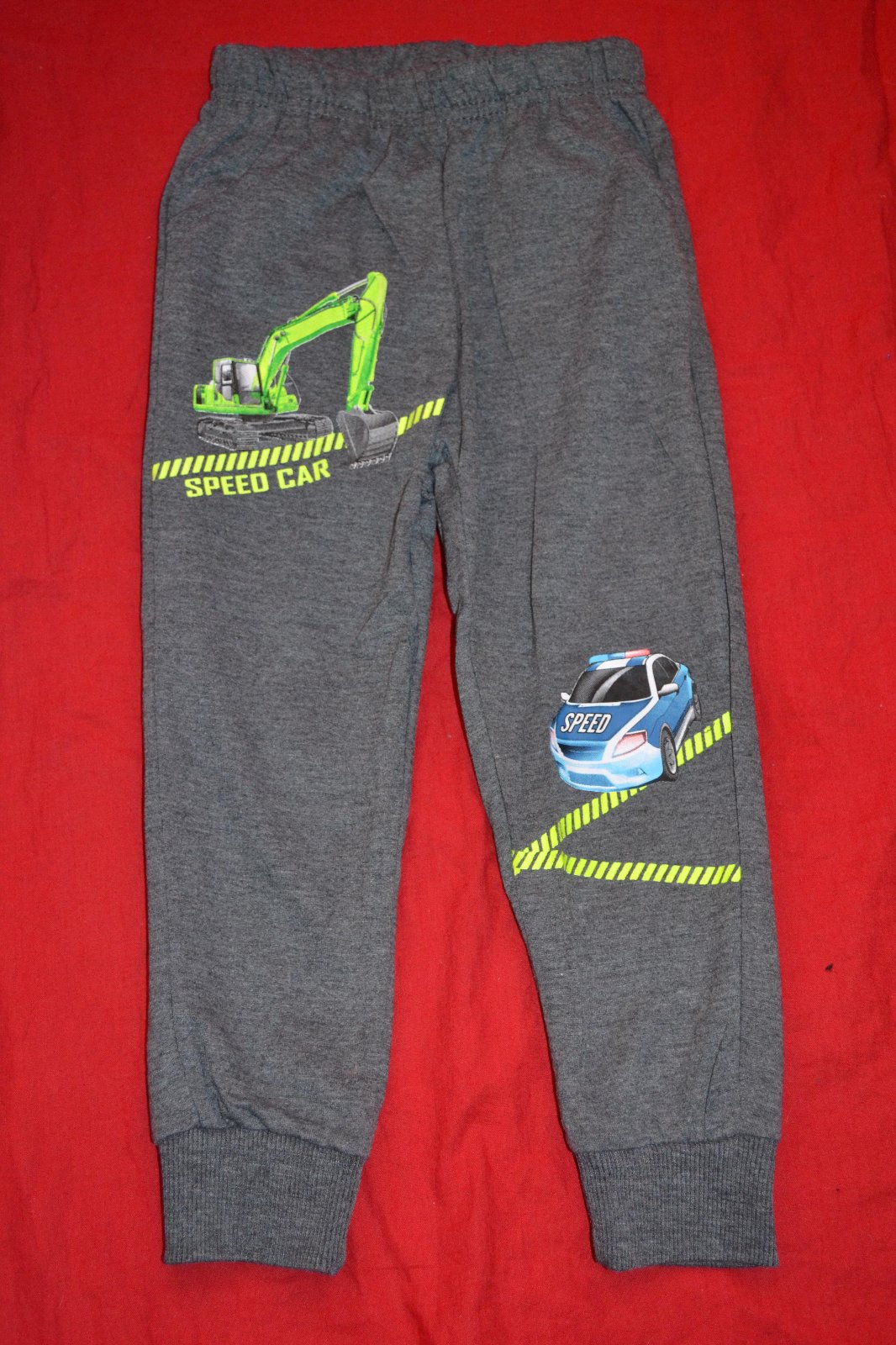 praktické nové tepláky s policií a bagrem, v.122, nové, délka 69cm