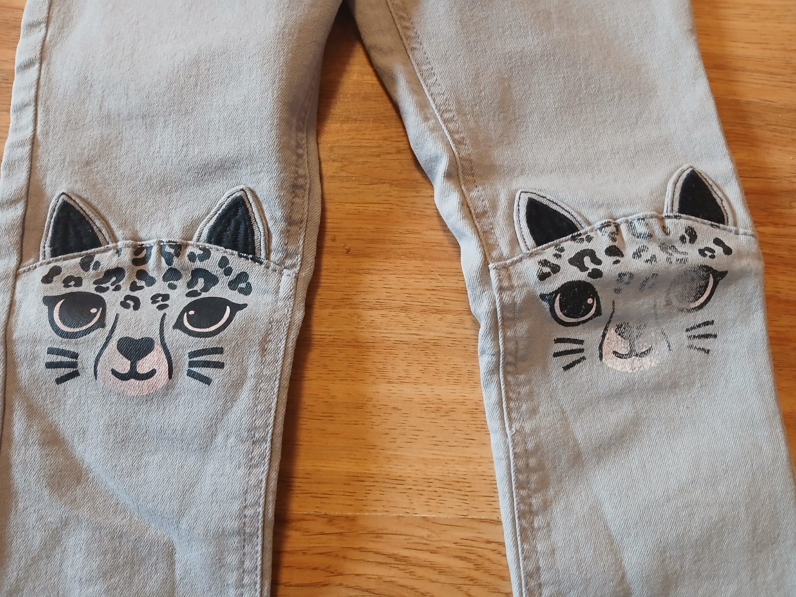 Dcerkou nošené, jsou bez flíčků, dírek a žmolečků, mají jen nepatrný chloupek od praní. Barvy jsou ve skutečnosti trochu světlejší. Velikost je uvedena 110, materiál je 95% bavlna, 5% elastan. ROZM...
