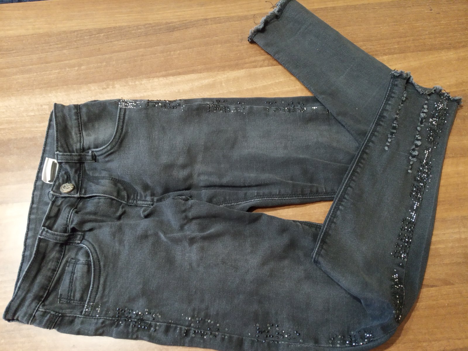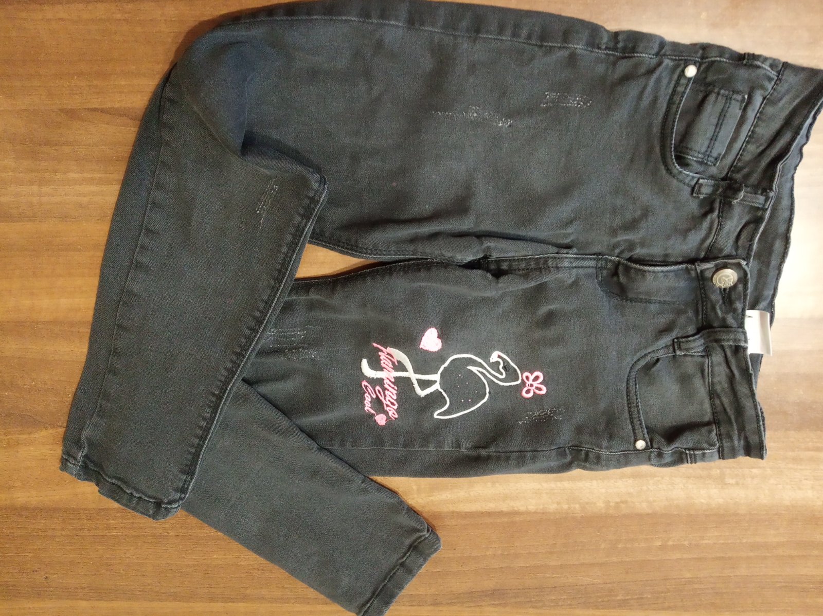 Prodám 2x rifle, vel 146. Lehka džínovina, nošené, ale parádu udělají. Jedny rifle s plameňákem a druhé na boku kalhot kamínky. Cena celkem.