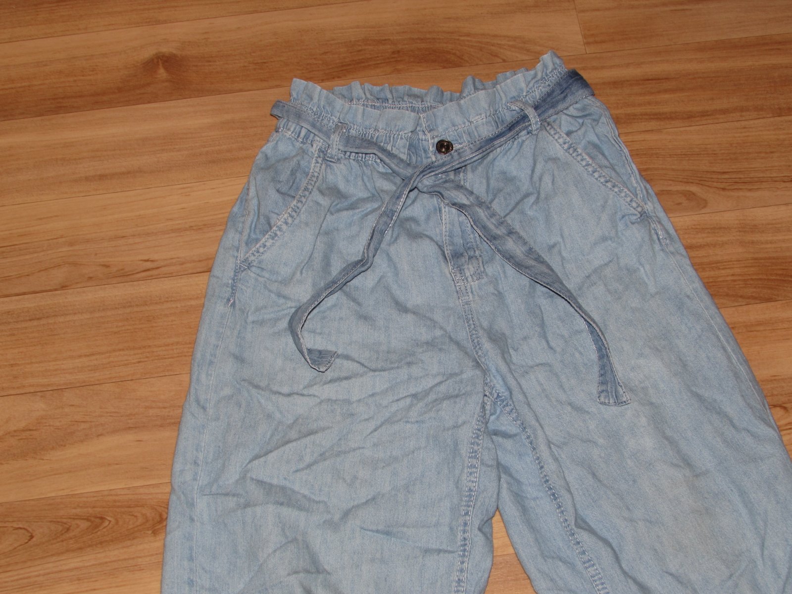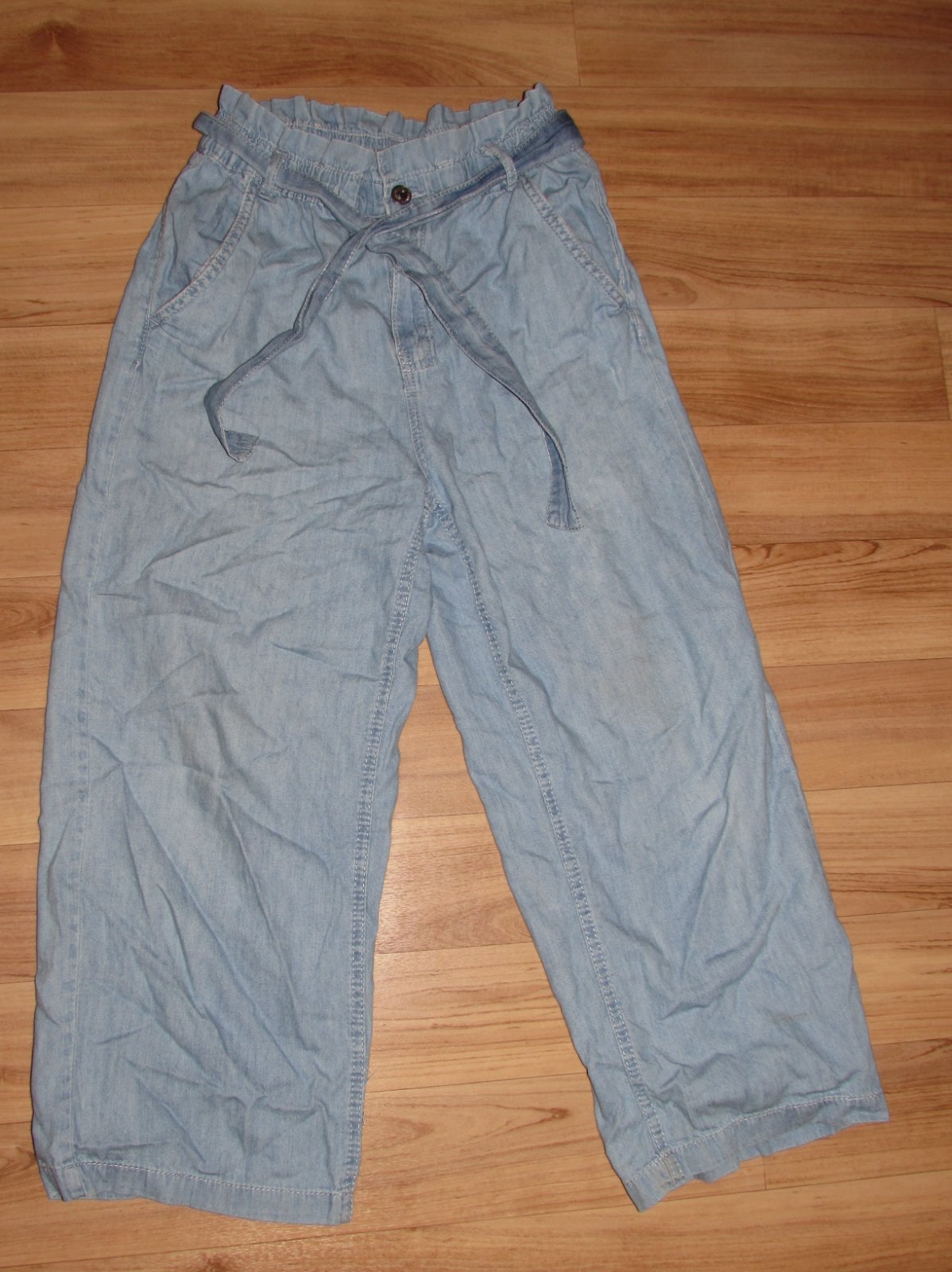 Prodám nošené slabší džíny kratšího střihu, cosi jako culotte vel. 158 značky Destination. Na fotce nejsou vyžehlené. Velice příjemné na nošení.