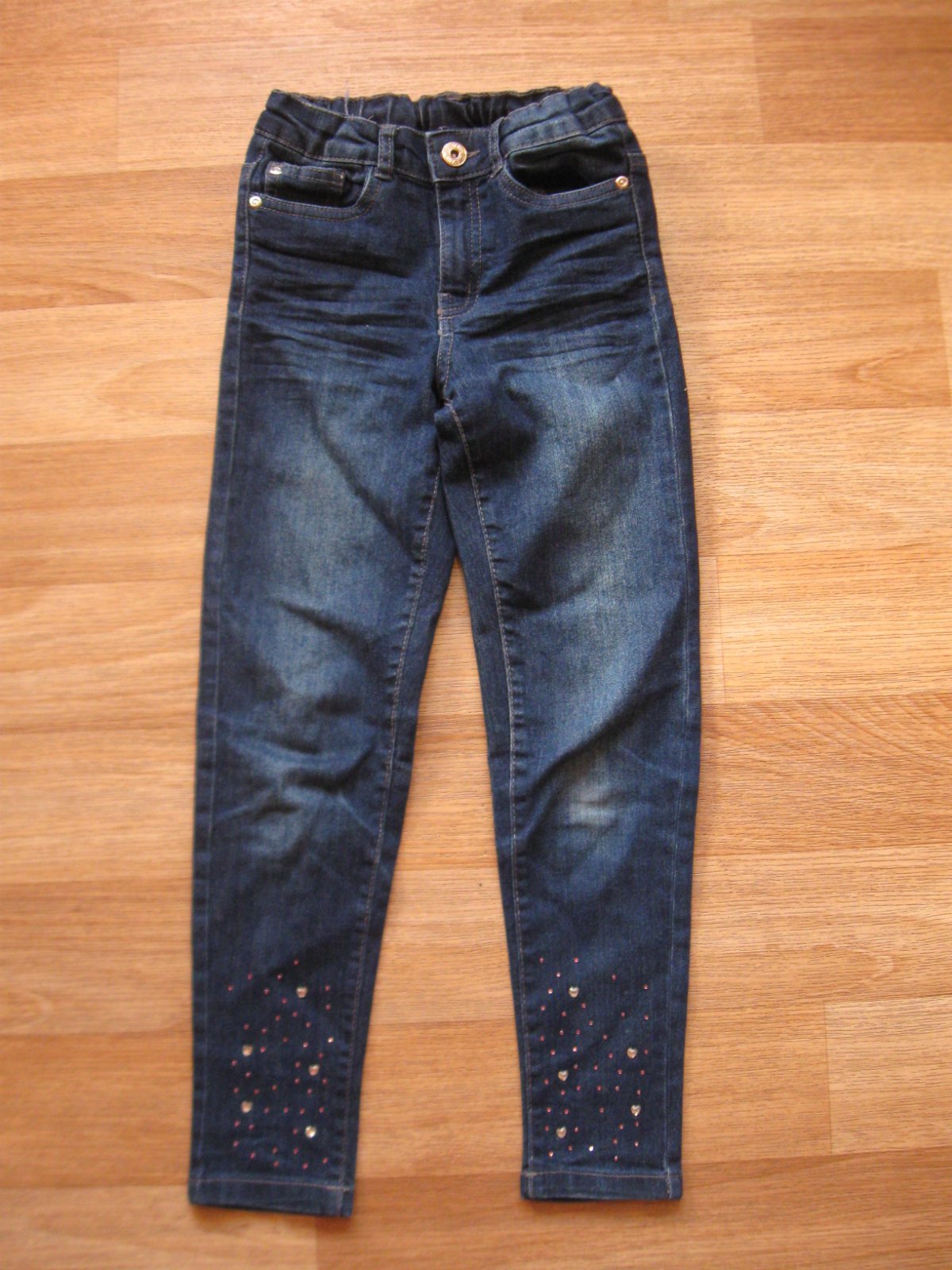 Slim džíny - tregíny vel134, pružné, v pase do gumy, nošené, velmi dobrý stav