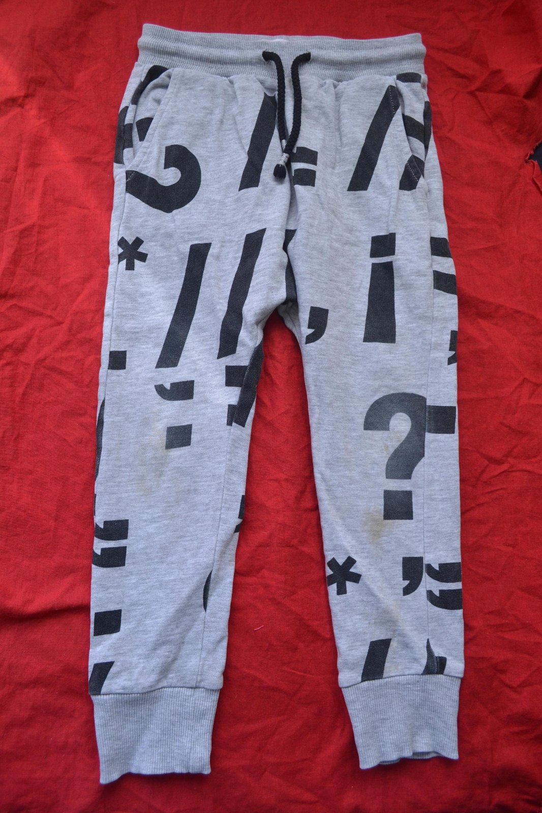 praktické kvalitní tepláky v.116, bavlna, délka 64cm,kolena trochu s fleky, jinak dobré, žádné dírky..