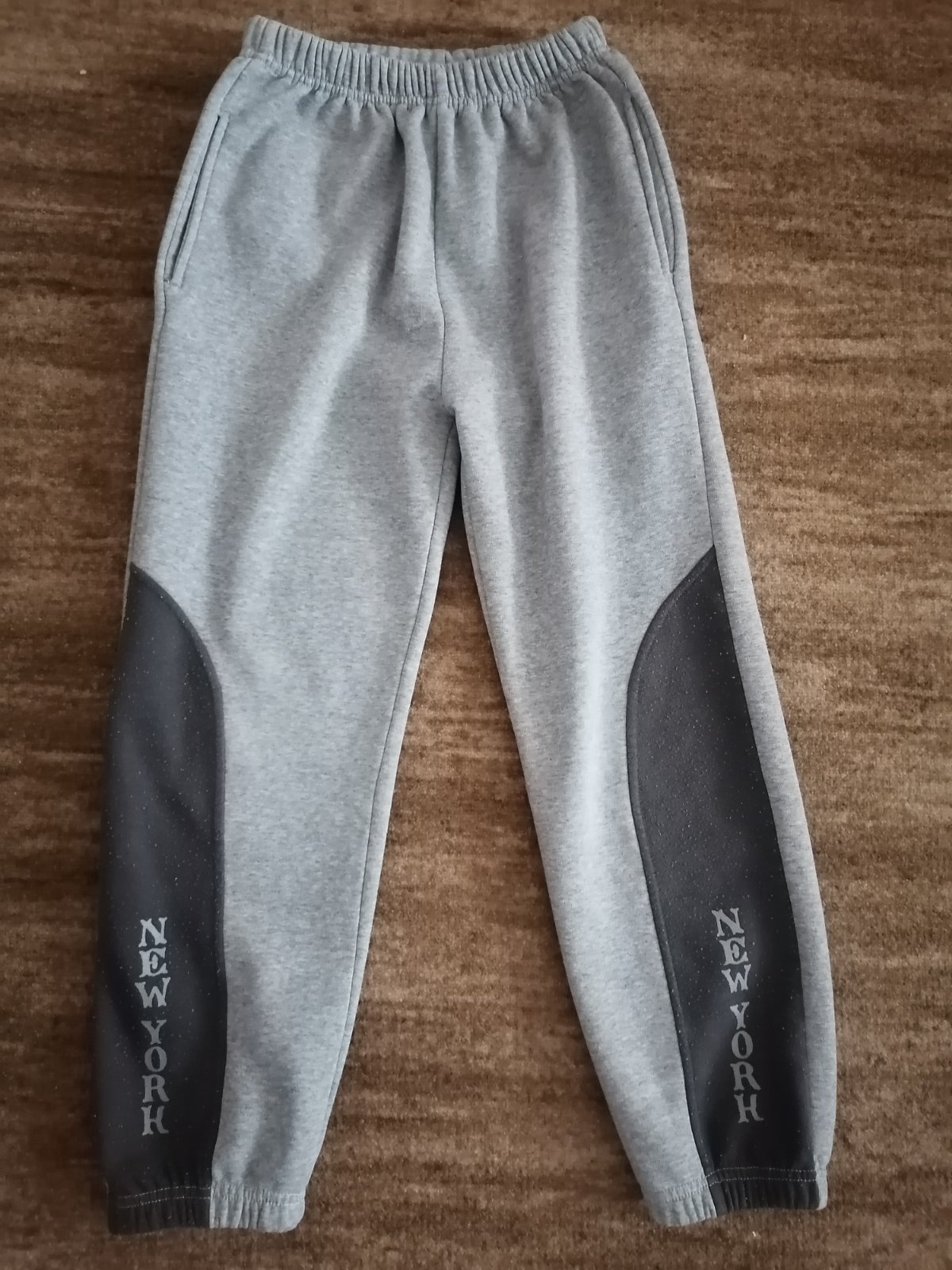 Bavlněné tepláky s nápisem na nohavici, boční kapsy, v pase guma a šňůrka, 95% bavlna, 5% viskoza.Na zadečku zašitá 1cm dírka, jinak bez jiných vad. Zohledněno v ceně. Ještě užijete. Značka Belgie ...