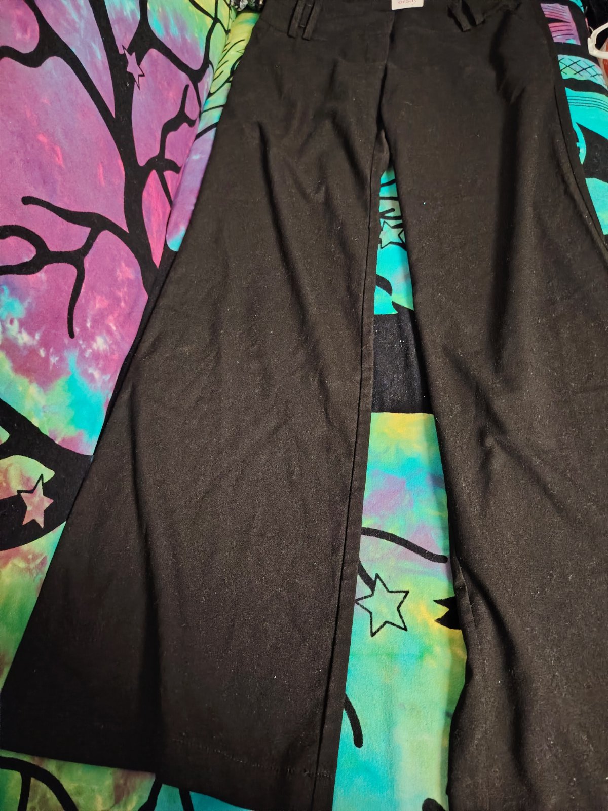 kalhoty jsou v bezvadném stavu. příjemný trochu pružný materiál. Rozměry: délka 110 cm, šíře pas 2x39 cm, nohavice od rozkroku 84 cm, délka sedu 32 cm. pěkně sedí.