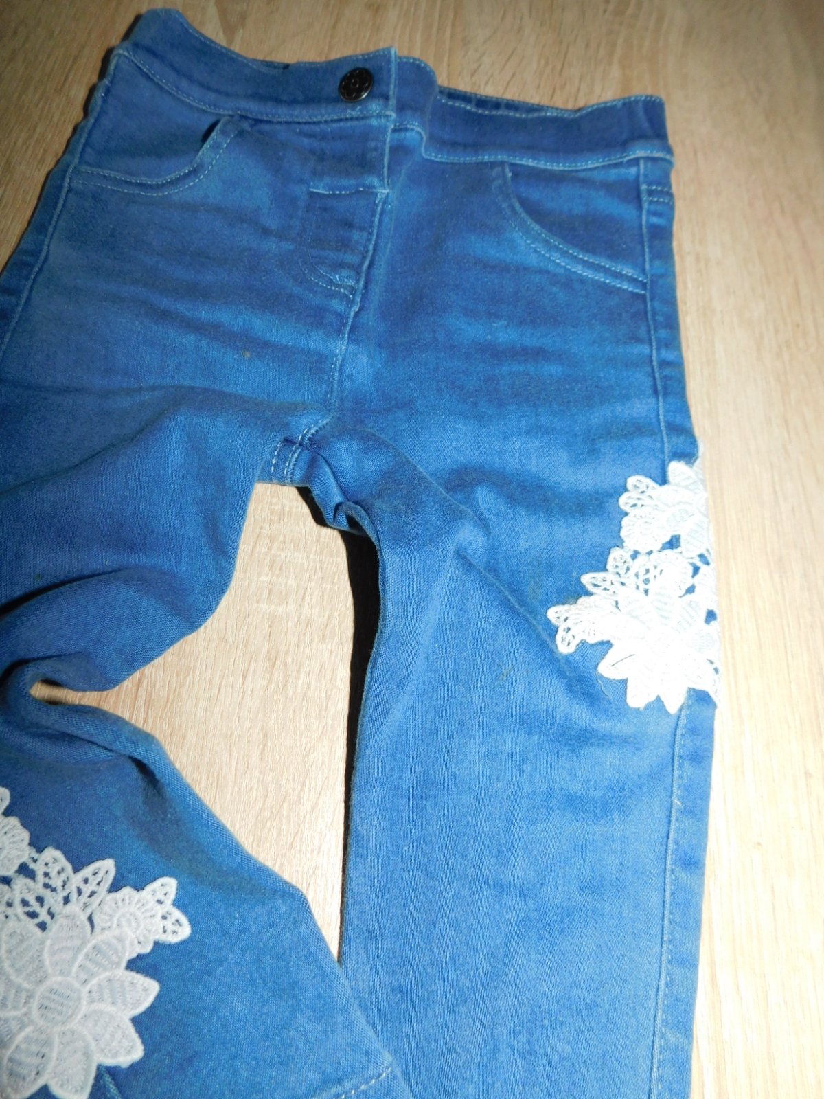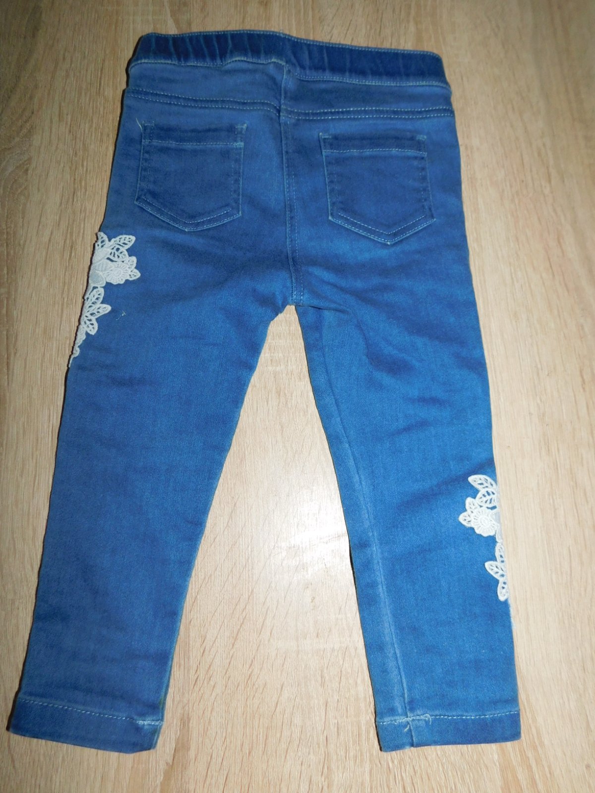 Krásné dívčí pružné kalhoty-jegíny .... Nové bez visačkou ... v pase jeden patentní knoflík ... na předním i zadním díle jsou našité kapsy ... z boku nohavic jsou našité ozdobné kraječky ... vyrobeno z 74%bavlna, 23% polyester a 3% elastan .... velikost psaná 80/86 ....