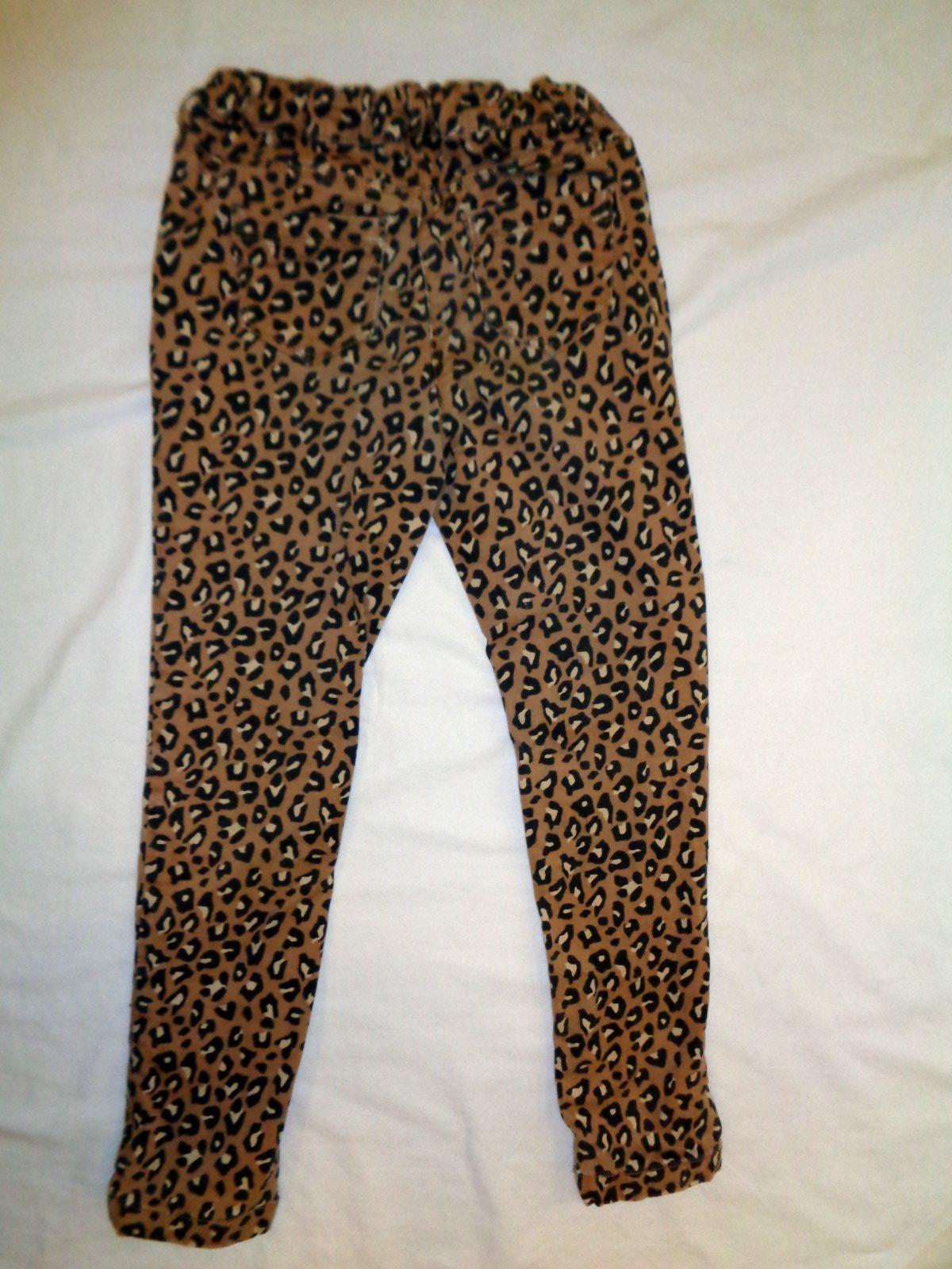 PŘÍJEMNÁ MĚKOUČKÁ ELASTICKÁ RIFLOVINA - TYGŘÍ VZOR. V PASE REGULOVACÍ GUMKA, POUTKA PRO PŘÍPADNÝ PÁSEK,KOVOVÝ KNOFLÍK A POKLOPEC SE ZIPEM. VPŘEDU I VZADU OTEVŘENÉ KAPSY. PODŠITÉ BAVLNOU. NOŠENÉ - SUPER STAV - BEZ VADY - MÍRNĚ ŠISLÁ KOLENA, ALE NÉ TOLIK JAKO NAFOTCE - VYTÁHL FOŤÁK.