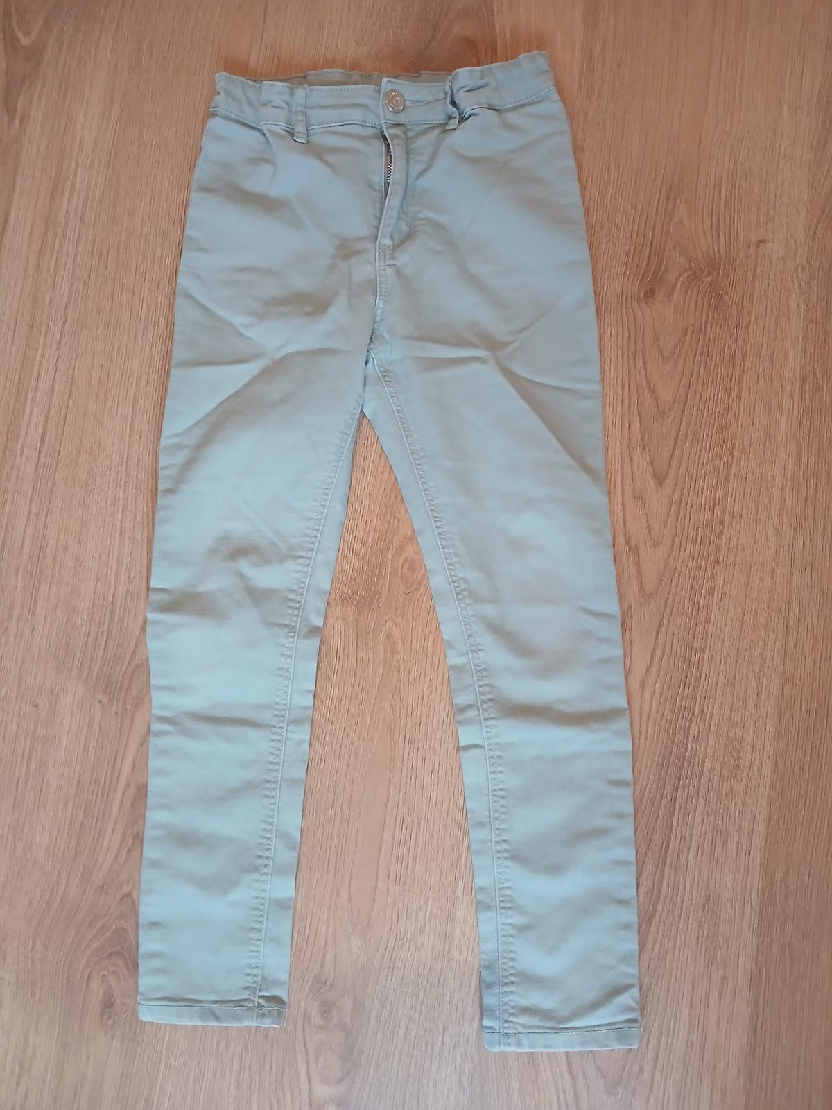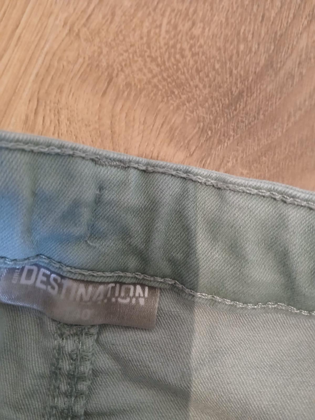 hezké slušivé džíny s ozdobami na kapsičkách (výšivky, kamínky), některé kamínky již chybí, ale i tak je to moc hezké. Lehce elastické 2% elastanu, vel. uvedena 10, jedno koleno trochu zeslabené, a...