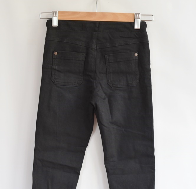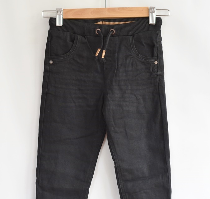 Černé, pružné džíny, podšité bavlnou. Šňůrka je funkční.