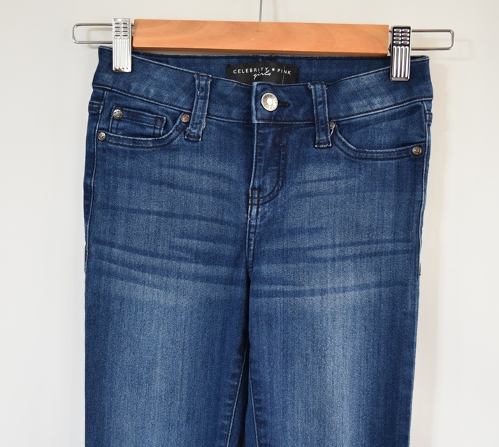 Tm. modré úzké dívčí džíny. Pas na pevné, džínovina, měkká, pružná.