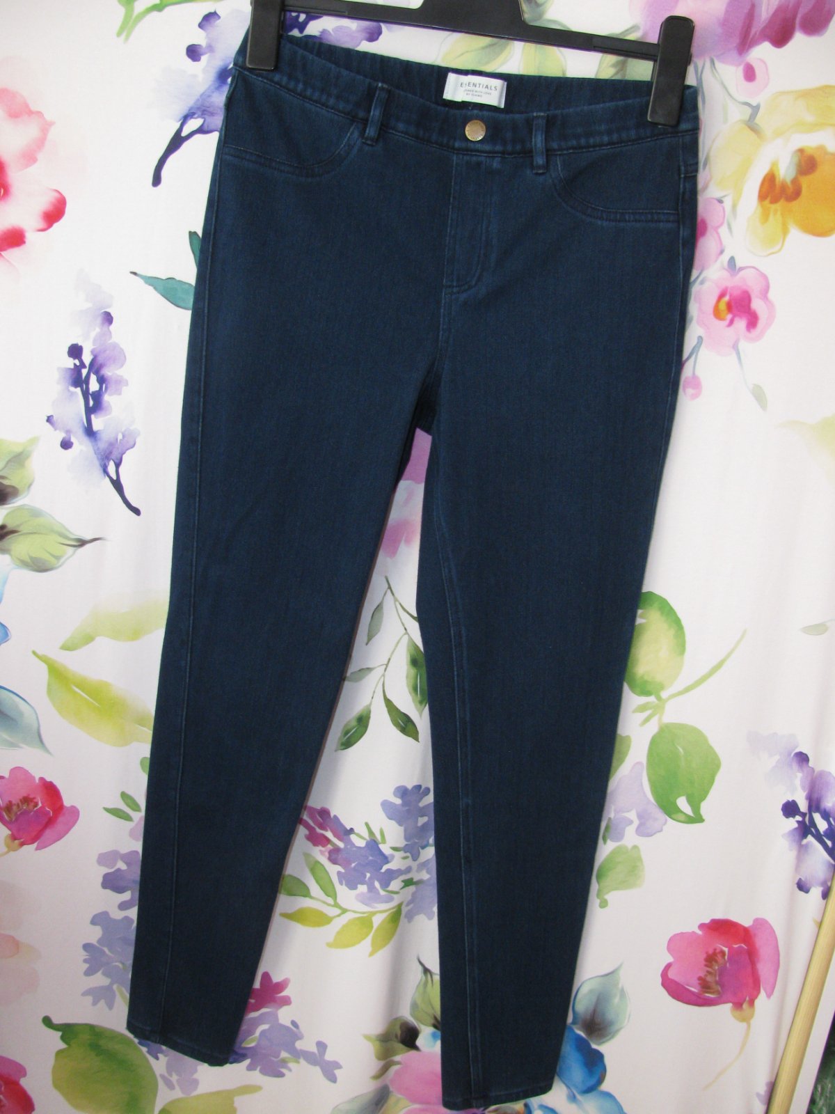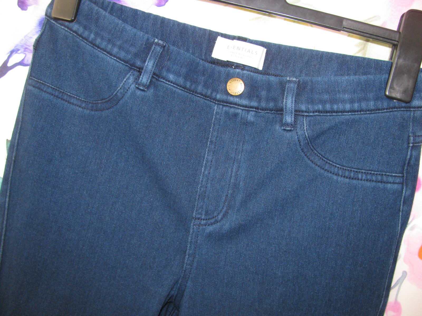 Parádní elastické, tmavě modré džíny, zadní kapsy, přední jsou falešné, v pase pohodlná guma, 53% bavlna, 32% polyester, 15% elastan.