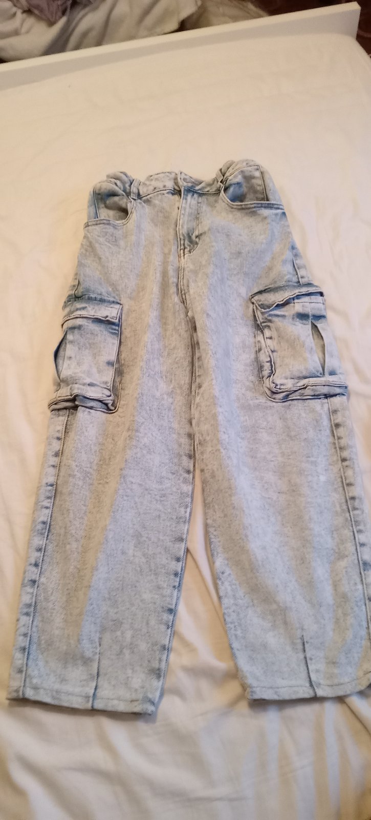 prodám světlé džíny tzv.pegy džin,zn.kik,vel.158,hodně kapes,v pase nastavitelná guma,délka 86cm