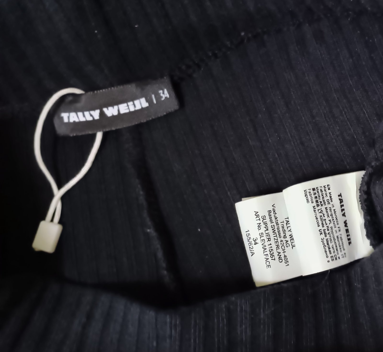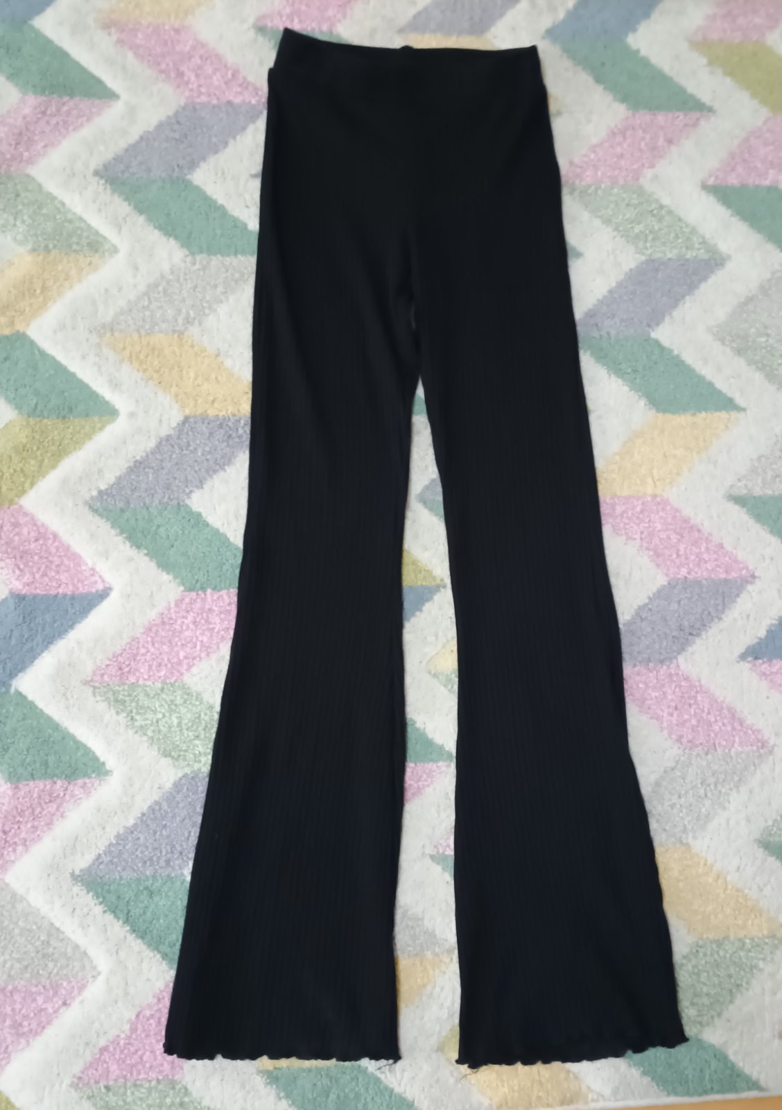 Krásné, černé žebrovaný materiál ,pohodlné ,velikost uvedená 34 ,odpovídají velikosti XS, minimálně nošené