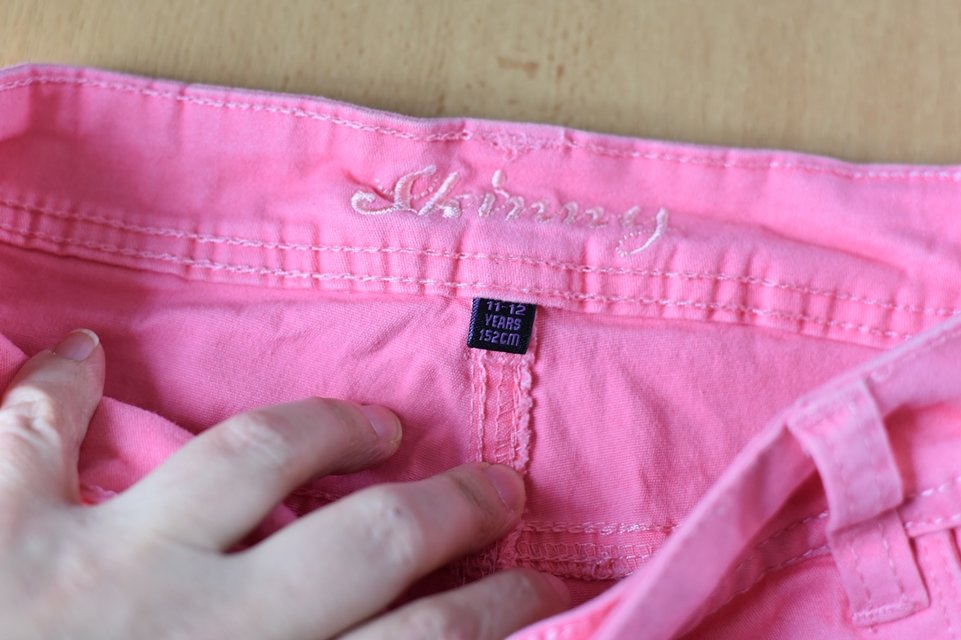 Sv. růžové džíny jsou pružné, nemají v pase regulaci.